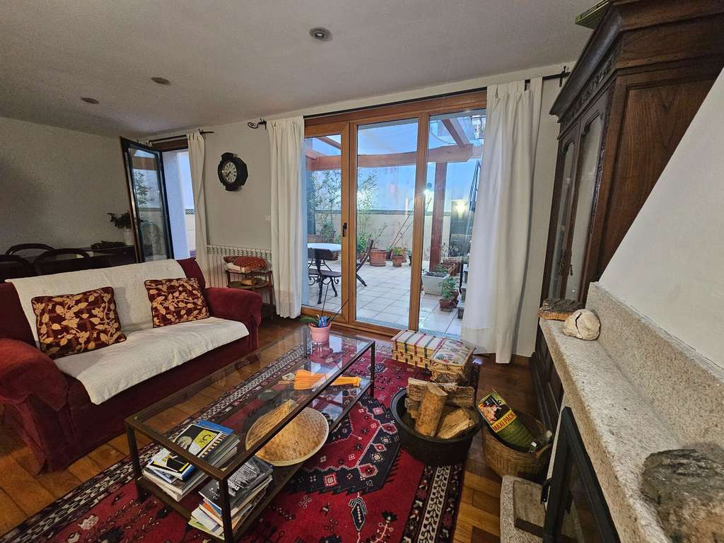 En esta planta se encuentra también un baño de cortesía con plato de ducha, un útil armario bajo escalera y un acogedor salón-comedor que se abre en verano hacia una terraza cubierta, creando un espacio fluido y lleno de vida.