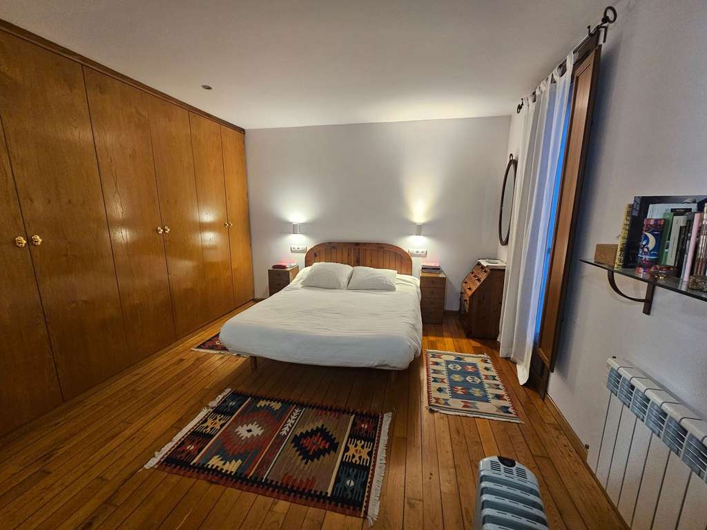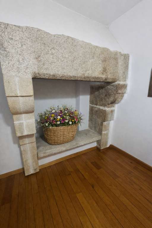 El dormitorio principal destaca por su amplitud y su gran armario, pero sobre todo por un detalle que lo hace único: una chimenea de piedra original, convertida en un elemento decorativo que aporta personalidad y un encanto muy especial.