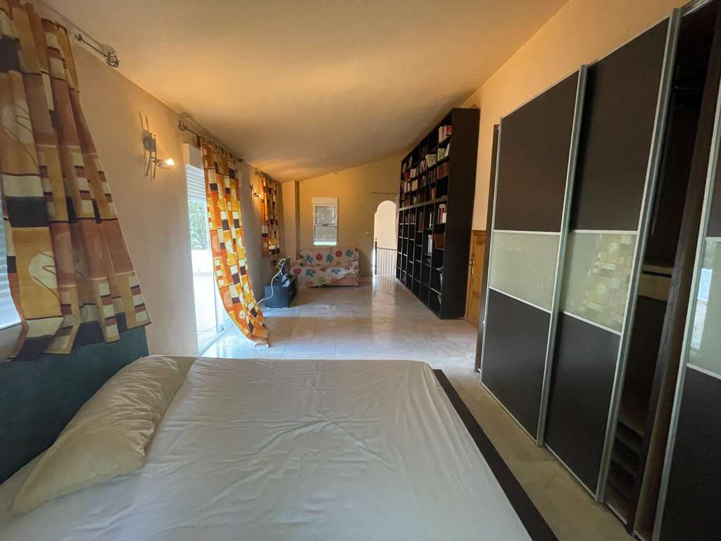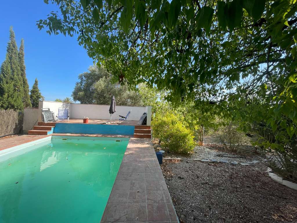 La vivienda, en muy buen estado de conservación, ofrece 3 habitaciones, una de ellas muy amplia con su propia terraza privada. Dispone también de una piscina privada y una amplia parcela de 1.800 m², ideal para disfrutar del aire libre y la tranquilidad que caracteriza a la zona.