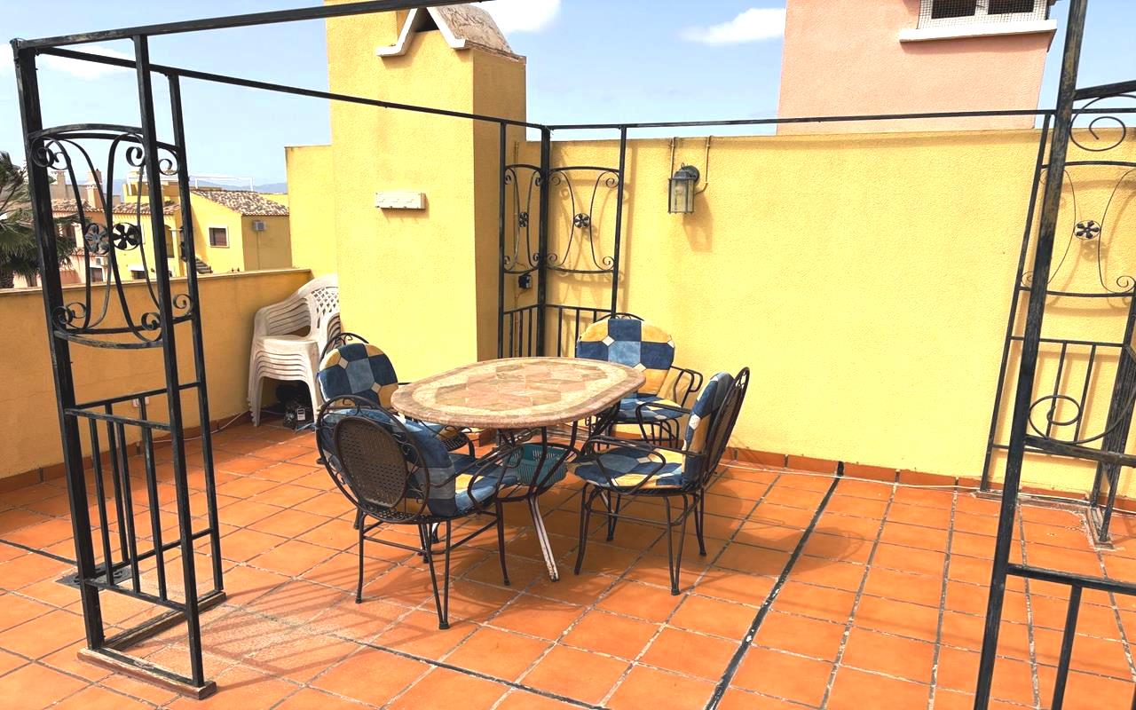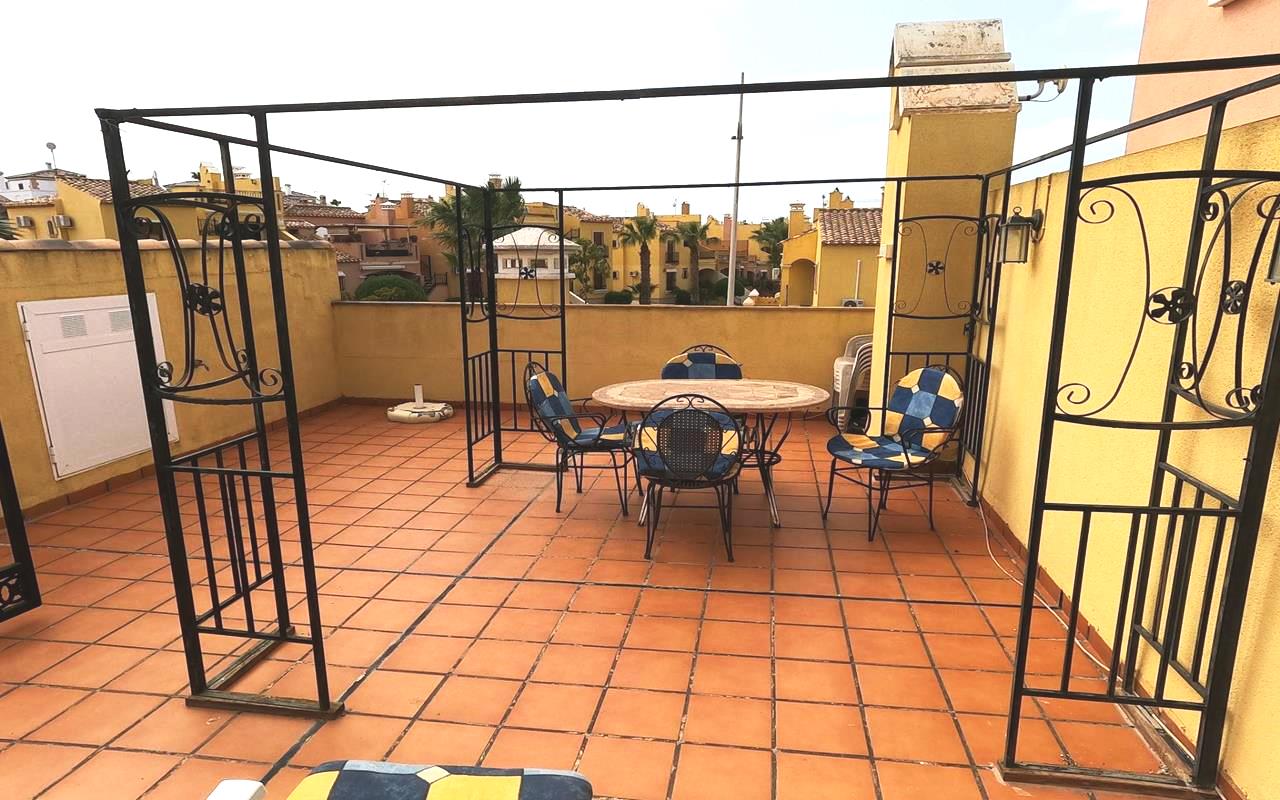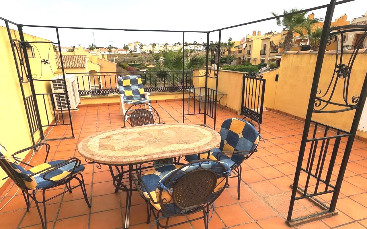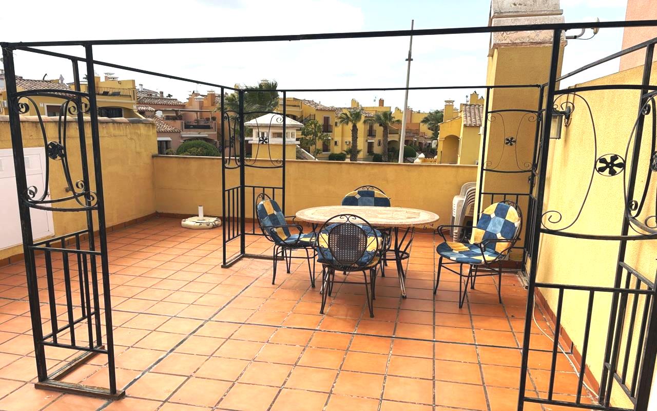 Situado en un complejo residencial cerrado y seguro, este apartamento completamente amueblado ofrece paz y privacidad. Su orientación este permite la entrada de abundante luz natural durante todo el día, creando un ambiente cálido y acogedor. Desde la terraza de 8 m², unas escaleras conducen al solárium de 50 m² con vistas panorámicas. Los residentes también pueden disfrutar de la piscina comunitaria, ideal para relajarse y socializar con los vecinos en los días soleados. Descúbralo en nuestra página web WhiteVillasInSpain.