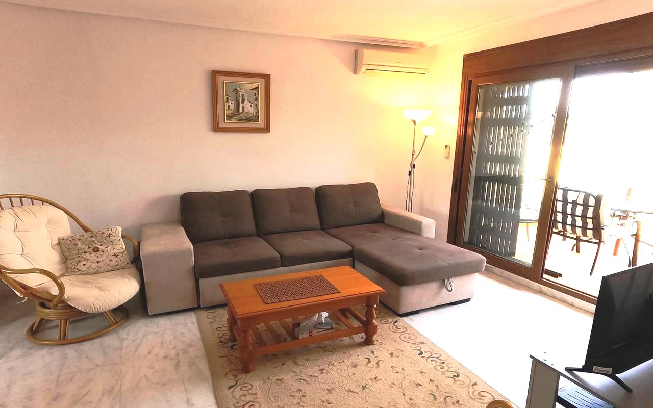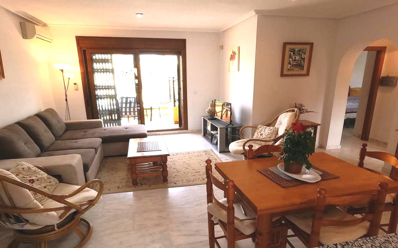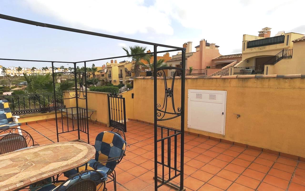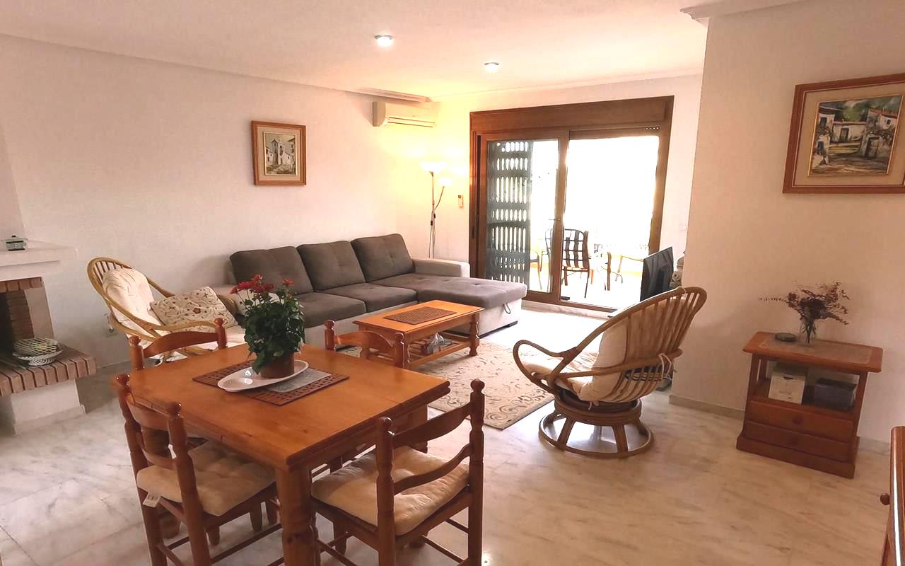 Situado en un complejo residencial cerrado y seguro, este apartamento completamente amueblado ofrece paz y privacidad. Su orientación este permite la entrada de abundante luz natural durante todo el día, creando un ambiente cálido y acogedor. Desde la terraza de 8 m², unas escaleras conducen al solárium de 50 m² con vistas panorámicas. Los residentes también pueden disfrutar de la piscina comunitaria, ideal para relajarse y socializar con los vecinos en los días soleados. Descúbralo en nuestra página web WhiteVillasInSpain.