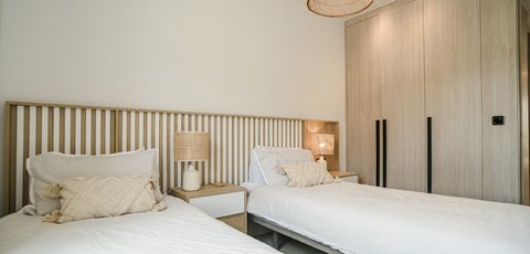 Cet appartement moderne et spacieux situé au rez-de-chaussée dispose de trois chambres , d'un jardin privé et d'une finition luxueuse jusque dans les moindres détails. Entièrement meublé et prêt à emménager , il est idéal pour ceux qui souhaitent profiter d'un style de vie élégant dans un environnement calme et verdoyant, sans soucis.