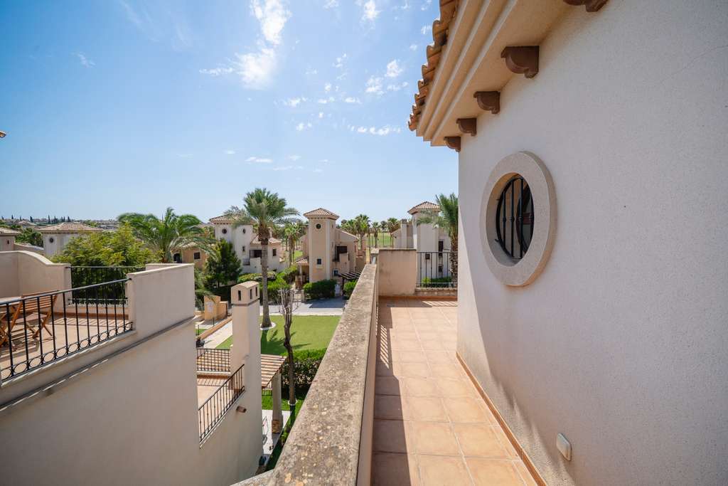 La primera planta dispone de un baño completo y dos dormitorios con armarios empotrados: uno con balcón y otro con una hermosa terraza privada.