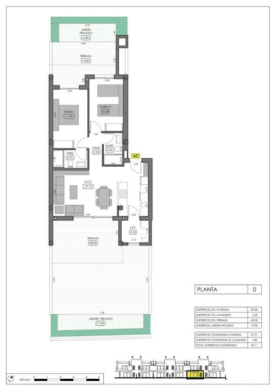 Estos soleados bungalows se distribuyen en dos bloques, disponen de 2 y 3 dormitorios, 2 baños, cocina americana con la zona del salón, armarios empotrados.