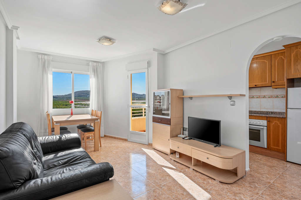 Este encantador apartamento de dos dormitorios con impresionantes vistas al campo se encuentra en el centro de Algorfa, Alicante. La propiedad cuenta con un luminoso salón-comedor, una cocina semiabierta totalmente equipada, dos dormitorios con armarios empotrados, un baño con bañera, una terraza orientada al sur con fantásticas vistas al campo y las montañas circundantes, y también hay una terraza/solarium privada en la azotea para aprovechar al máximo el sol y las vistas.