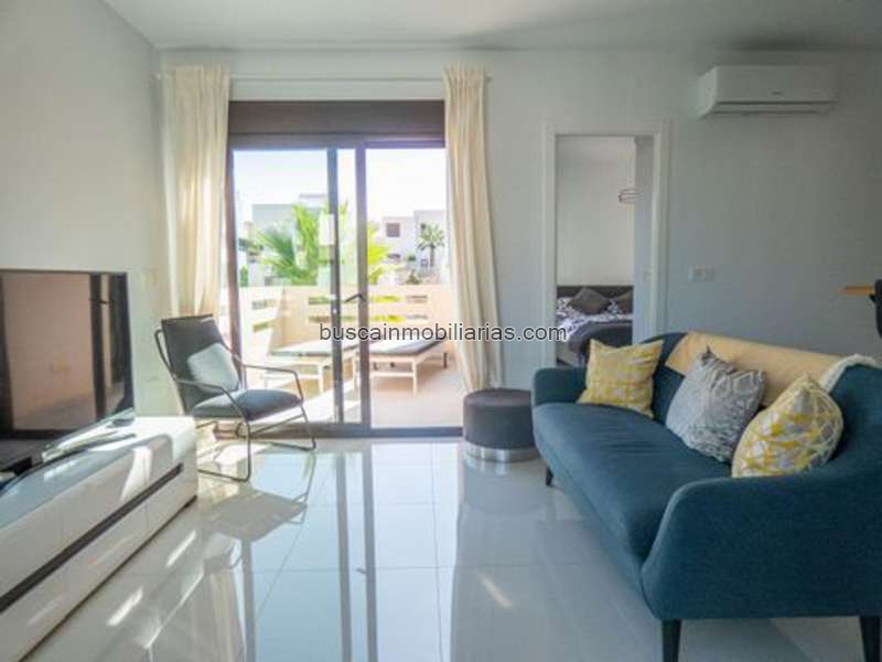Descripción del objeto: Este apartamento ofrece dos dormitorios y dos baños y está situado en el conocido y muy respetado LA FINCA GOLF and SPA RESORT. Al subir algunos escalones y entrar al apartamento, tiene un pequeño pasillo, frente a usted está el cuarto de baño familiar, que es moderno con líneas limpias, a la izquierda de este está el dormitorio de invitados, que es de buen tamaño y tiene dos camas individuales, armarios empotrados y aire acondicionado, desde aquí se regresa a una gran sala de estar. A la derecha hay una cocina bien pensada que recorre toda la pared; la belleza de esto es que crea mucho más espacio habitable, que los propietarios actuales han aprovechado y creado un hermoso comedor y una sala de estar para relajarse, que fluye bien. A la derecha tiene el dormitorio principal, que tiene aire acondicionado, armarios empotrados y su propio cuarto de baño con ducha, volviendo a la sala de estar, hay dos puertas correderas separadas que conducen a dos pequeñas terrazas separadas. donde puedes elegir entre sol o sombra a medida que el sol gira. Si regresa a la entrada principal y sale, hay una escalera que lo lleva a un encantador solárium en la azotea, que es un área excelente para relajarse y broncearse, entretener a sus amigos con una barbacoa o Toma una copa tranquilamente y contempla la puesta de sol a lo lejos a través del campo, ¡la elección es tuya! Ubicación de casa/solar: Este apartamento está a unos 15 minutos a pie de todos los servicios locales, como restaurantes, tiendas y bares, además de solo 17 minutos en coche de la costa si desea darse un baño en el mar o caminar por el paseo marítimo. Otros: Calificación energética está pendiente.