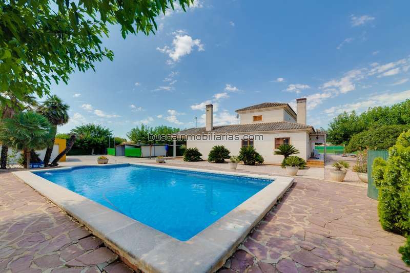 La parcela es llana y tiene 7.200m2. Sobre ella está construida la vivienda principal, piscina, pista de tenis, barbacoa, casa de invitados, cenador chill out y jardín.