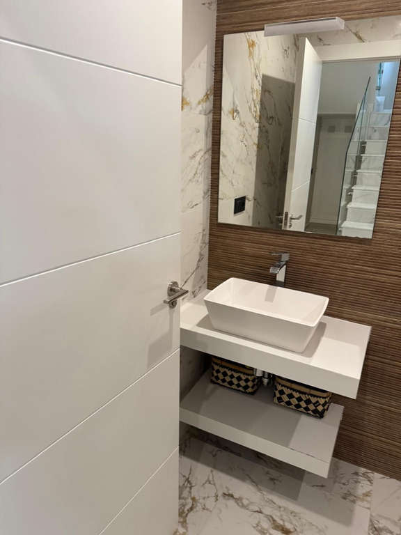 Nos complace ofrecer una impresionante villa independiente en la codiciada zona de La Finca Golf, Algorfa. Construida en 2022, esta casa ultramoderna ofrece una espaciosa distribución interior, ideal para una vida cómoda. Con cinco amplios dormitorios y cuatro elegantes baños, ofrece amplio espacio para familias o para quienes disfrutan de recibir invitados. La villa también cuenta con un sótano, que ofrece espacio adicional para almacenamiento o uso recreativo. El solárium cuenta con una marquesina y ofrece vistas panorámicas a la costa y las montañas. La propiedad cuenta con una piscina privada climatizada, ideal para disfrutar del clima invernal y estival mientras se relaja en su propio patio trasero. Al no estar amueblada, puede personalizar el espacio a su gusto, creando una casa que refleje su estilo. Ofrece numerosos extras: suelo radiante en los baños, azulejos de lujo, amplio solárium con magníficas vistas a las montañas y la costa, cocina de lujo con electrodomésticos Bosch, lavavajillas y encimeras de lujo, lavadero con caldera grande, paneles solares, persianas eléctricas, piscina climatizada con iluminación multicolor, cubierta eléctrica, escaleras de mármol, iluminación exterior adicional, portón eléctrico y preinstalación para cargador de coche eléctrico. ¡Esta es una casa de ultra lujo que ofrece todo el confort necesario! La propiedad se encuentra a poca distancia a pie de un animado centro comercial con bares y restaurantes. El famoso campo de golf La Finca Golf está a pocos minutos en coche. La Finca Golf es un complejo de lujo con espacio para caminar o montar en bicicleta por los alrededores. Ofrece total tranquilidad y, con los pueblos vecinos cerca, hay muchas maneras de disfrutar de todos los servicios cercanos. Esta villa es una oportunidad perfecta para quienes buscan invertir en una propiedad moderna y espaciosa. No pierda esta oportunidad única de adquirir una hermosa casa en Algorfa, gracias a Orange Casas.