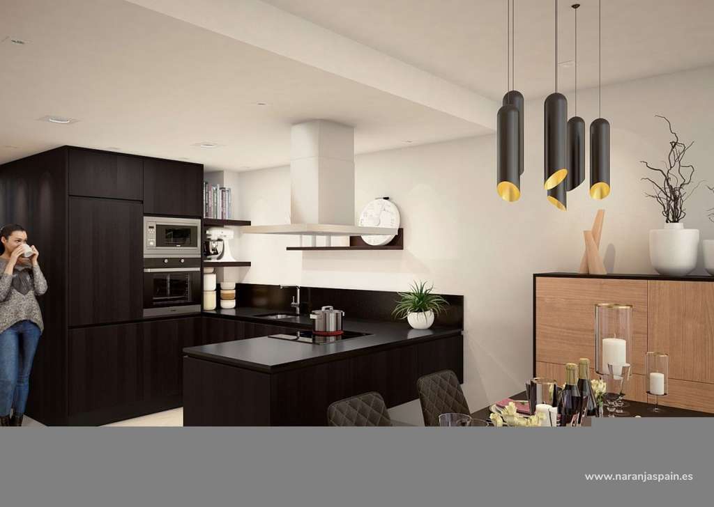 Villas pareadas de nueva construcción con 3 dormitorios, 2 baños, un amplio salón con puertas que dan al jardín, aparcamiento en la calle, una cocina abierta equipada con comedor.