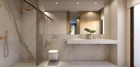 Las villas incluyen aire acondicionado por conductos totalmente instalado, persianas motorizadas, calefacción por suelo radiante en los baños y aparcamiento privado dentro de la parcela.