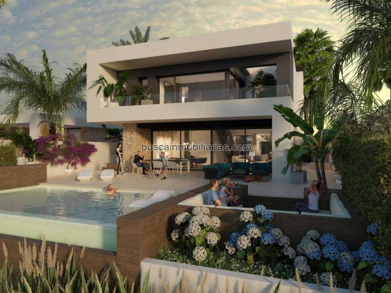 Villa de lujo construida en 2 plantas con 3 dormitorios, 3 baños, suite principal con vestidor, calefacción por suelo radiante (toda la propiedad), jardín privado con piscina infinita y zona de descanso, sistema domótico, sistema domótico, garaje subterráneo.