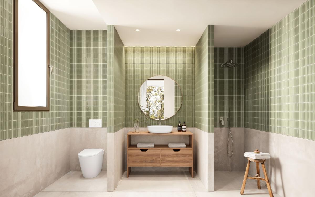 Los suelos de gres porcelánico aportan un toque contemporáneo y son fáciles de mantener.