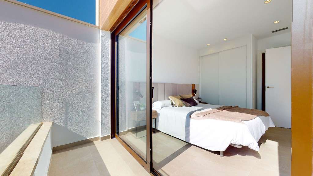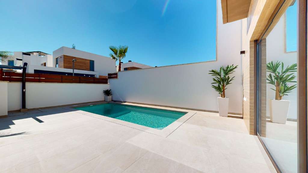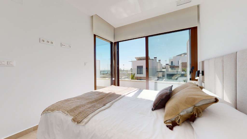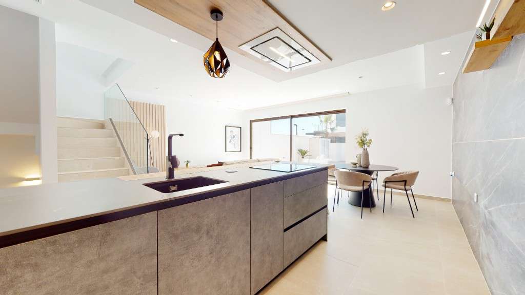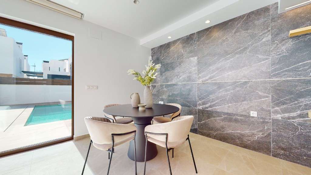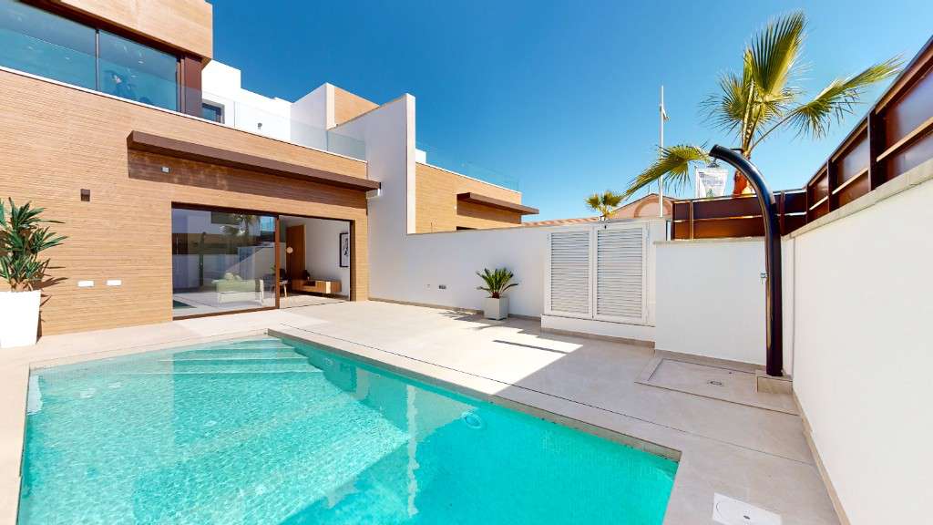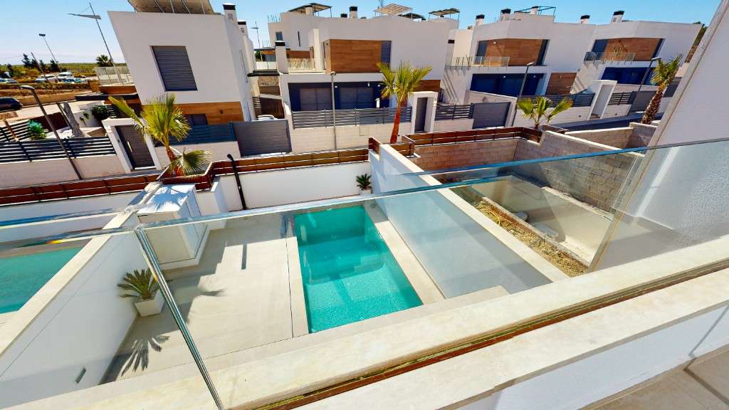 Casas adosadas en venta en Algorfa.Ofrecemos a la venta casas adosadas con piscina privada y solárium en una nueva promoción de lujo, ubicada en uno de los campos de golf más populares de la parte sur de la Costa Blanca, cerca del hotel spa de lujo.Las casas se componen de 3 dormitorios y 4 baños, con una amplia zona de estar y una cocina abierta. El dormitorio principal tiene baño. Las villas vienen equipadas con pre-instalación de aire acondicionado, baños con espejos en el baño y mampara de ducha.Al sur de la Costa Blanca se encuentra la zona con playas de arena con Bandera Azul, decenas de restaurantes y bares.La urbanización se encuentra a poca distancia en coche del gran centro comercial Zenia Boulevard ya solo 40 minutos del aeropuerto internacional de Alicante.