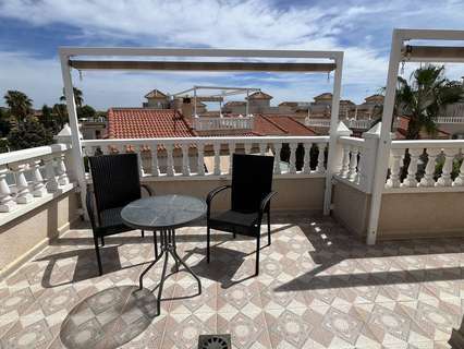 SE VENDE VILLA CON PISCINA COMUN EN ALGORFA, COSTA BLANCAEsta villa de estilo tradicional mediterráneo situada en campo de Algorfa, Alicante. La casa tiene 3 dormitorios y 2 baños, terraza abierta, solárium privado con magníficas vistas despejadas, cocina totalmente equipada y, también hay un garaje y trastero para almacenamiento. En el exterior podrá disfrutar de una piscina comunal y zona de barbacoa. La zona de jardín tiene una excelente iluminación exterior. Disfrute de día o de noche del ambiente completo con zona de barbacoa. Algorfa es un municipio de la Comunidad Valenciana, España. Está situado en la provincia de Alicante y en la comarca de la Vega Baja del Segura. Con su fácil acceso a la A37 que conecta Alicante con Cartagena y su proximidad a todos los pueblos costeros, Algorfa se ha convertido en un lugar de residencia perfecto tanto para disfrutar de sus vacaciones como para vivir en él. Distancia a la playa 10 km, distancia al aeropuerto 40 km, distancia al golf 3 km.