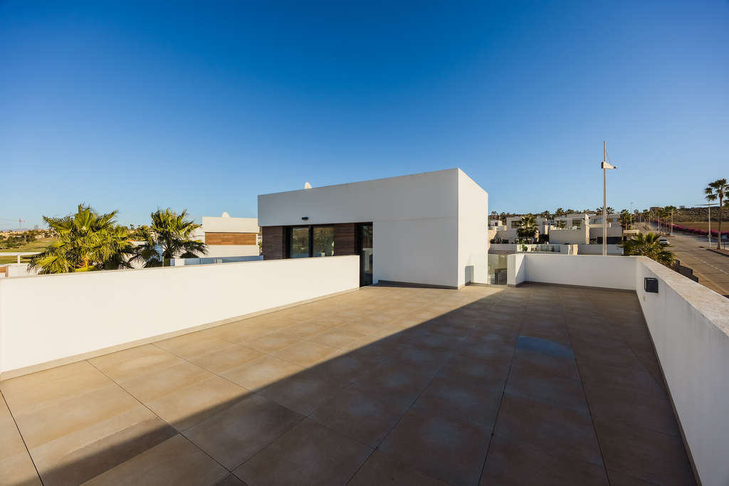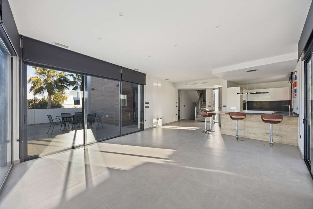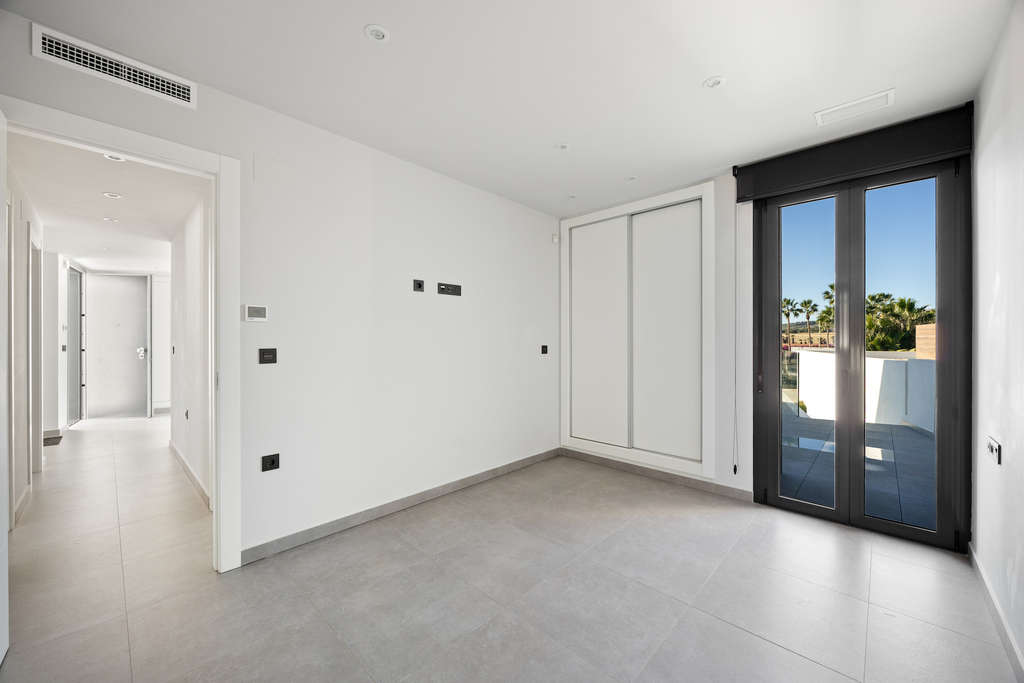 Impresionante villa con orientación sur en una ubicación privilegiada cerca de La Finca Golf, con excepcional privacidad, piscina infinita y un sótano de diseño de 120 m². Ubicada en una de las parcelas más privilegiadas en primera línea de La Finca Golf, esta moderna villa de 4 dormitorios combina elegancia arquitectónica, vistas panorámicas al campo de golf y a la montaña, total privacidad y un sótano único de 120 m² con abundante luz natural y espectaculares ventanales a la piscina, una característica poco común en España. A solo 30 minutos del aeropuerto de Alicante, es la base ideal para vivir todo el año, disfrutar de largos fines de semana de golf o disfrutar de unas vacaciones de lujo. Descripción de la propiedad 4 dormitorios 3 baños + 1 aseo de invitados 300 m² de superficie construida (incluidos 120 m² bajo construcción) 440 m² de parcela privada Orientación sur Posición en primera línea de golf con vistas ininterrumpidas Piscina privada infinita con ventanal Amplias terrazas + solárium de 65 m² Zona de aparcamiento y doble acceso (entradas delantera y trasera) Sin gastos de comunidad Una casa diseñada en torno a la luz, las vistas y la privacidad La villa disfruta de una de las posiciones más privadas de La Finca, una rareza en el complejo. Ninguna propiedad vecina tiene vistas a la piscina, las terrazas o el solárium, lo que permite una total privacidad para tomar el sol, incluso al natural si se desea. La parcela elevada y las vistas abiertas proporcionan una atmósfera serena y exclusiva desde el amanecer hasta el atardecer. Área de estar principal La planta baja es un espacio luminoso y abierto enmarcado por vidrios de piso a techo, que brinda vistas y luz solar a cada rincón. Amplia sala de estar con vistas panorámicas Techos altos para una sensación arquitectónica aireada Acceso directo a la piscina y terrazas Flujo interior-exterior continuo La cocina equipada con Siemens incluye: Refrigerador Siemens Lavavajillas Siemens Hornos duales Siemens Placa de inducción AEG con extractor integrado Abundante espacio de trabajo y almacenamiento Isla de barra de desayuno Dormitorios y baños La villa ofrece cuatro dormitorios bien equipados, cada uno con grandes armarios empotrados y hermosa luz natural. Nivel principal Tres dormitorios, uno con baño en suite con bañera Acceso directo a la terraza y a la piscina desde dos dormitorios Cuarto de ducha familiar adicional Nivel superior Suite principal con baño privado Puertas corredizas a un espectacular solárium envolvente Vistas de gran alcance sobre el campo de golf y las montañas circundantes 120 m² Sótano: un espacio habitable raro y versátil Este nivel notable no se parece a ningún otro en La Finca: Inundado de luz natural Impresionantes ventanas de vidrio que miran directamente a la piscina Aseo de invitados + área de lavandería completa (lavadora Siemens y secadora Siemens) Este espacio se puede transformar en: Sala de cine Gimnasio Salón de juegos y bar Viviendas adicionales Oficina + estudio Área de spa de bienestar Las frescas temperaturas del verano lo hacen ideal para su uso durante todo el año. Vida al aire libre Piscina infinita con ventanas subacuáticas Grandes terrazas para tomar el sol con vistas inmejorables Hermoso paisajismo de bajo mantenimiento Orientación sur para una máxima exposición al sol Parcela elevada que garantiza la privacidad Solárium en la azotea de 65 m² para puestas de sol, yoga, cenas o jacuzzi Características adicionales Aire acondicionado Mitsubishi Electric (calefacción y refrigeración eficientes) Sistema de alarma de detección de movimiento Internet de fibra óptica de alta velocidad Persianas eléctricas Acceso frontal y trasero ideal para invitados o entregas Un corto paseo a restaurantes, bares, tiendas y servicios Acceso al spa de La Finca, academia de golf, club de pádel y tenis e instalaciones de fitness Estilo de vida y ubicación La Finca Golf es uno de los complejos de golf más respetados de España, clasificado entre los 1...