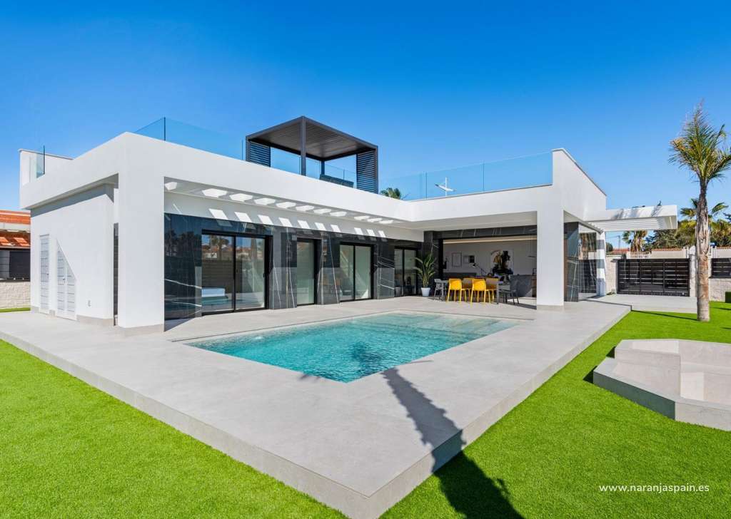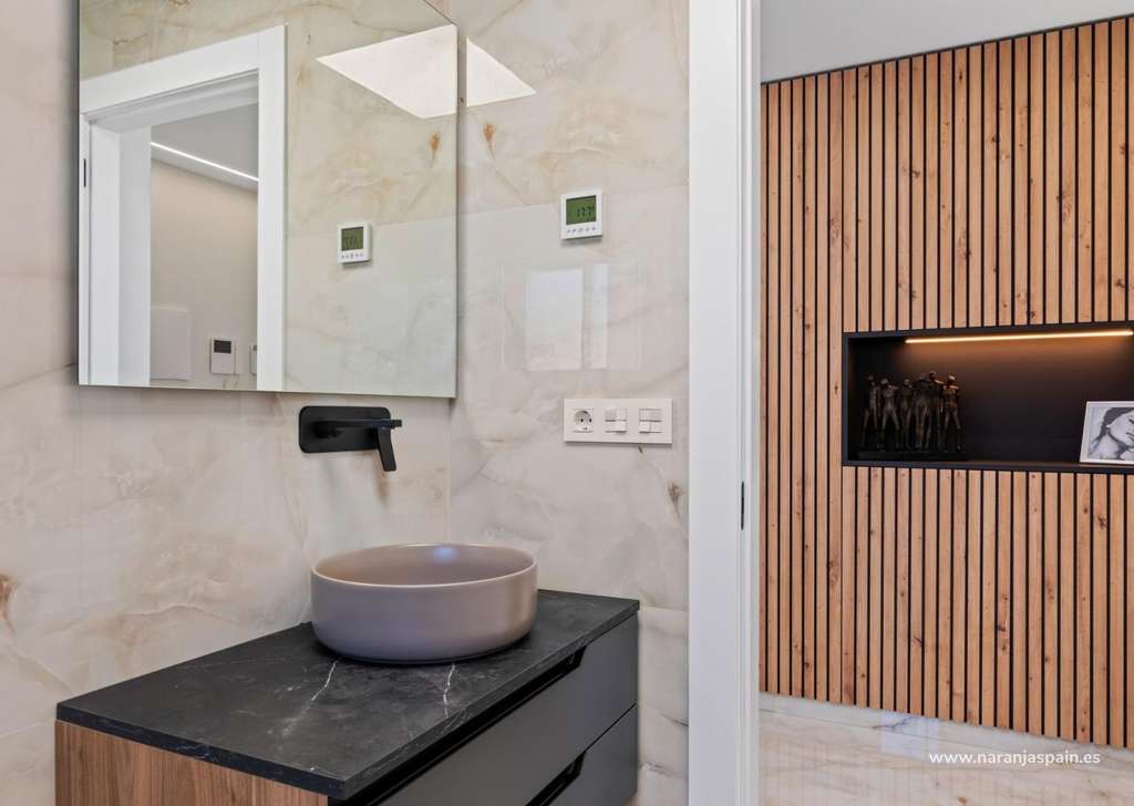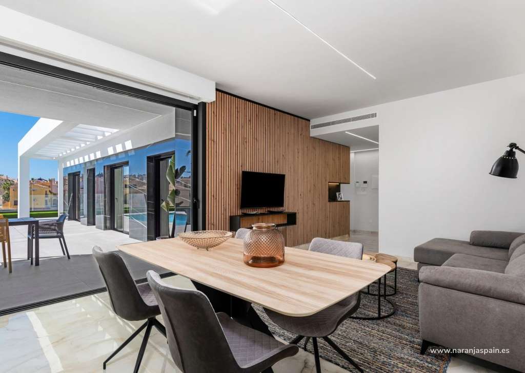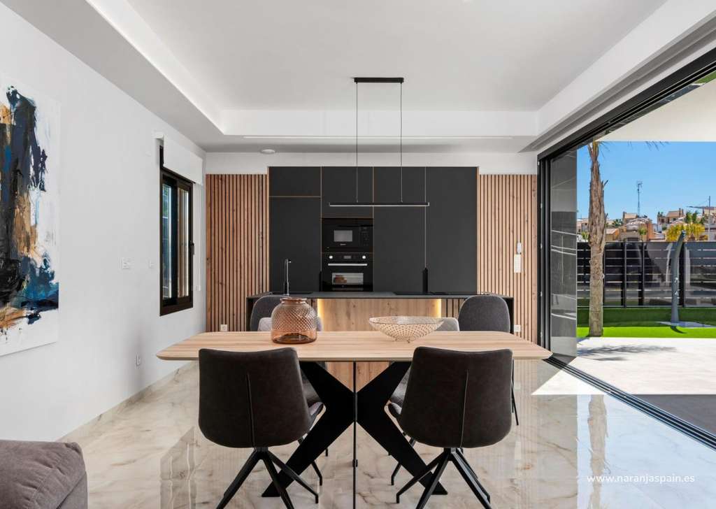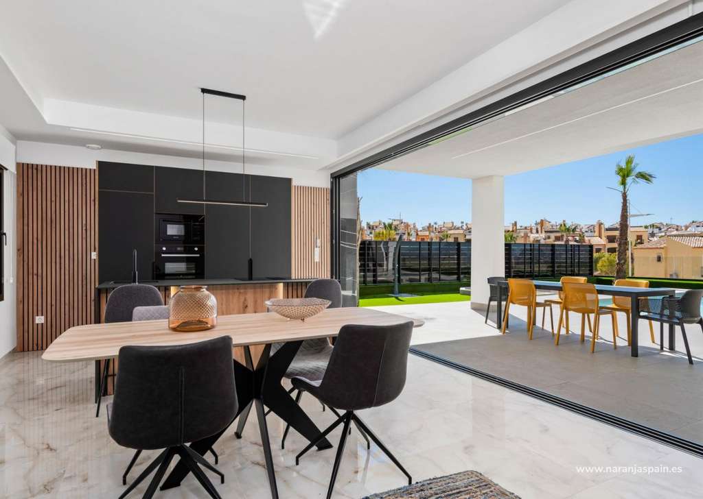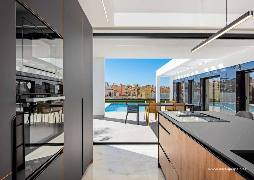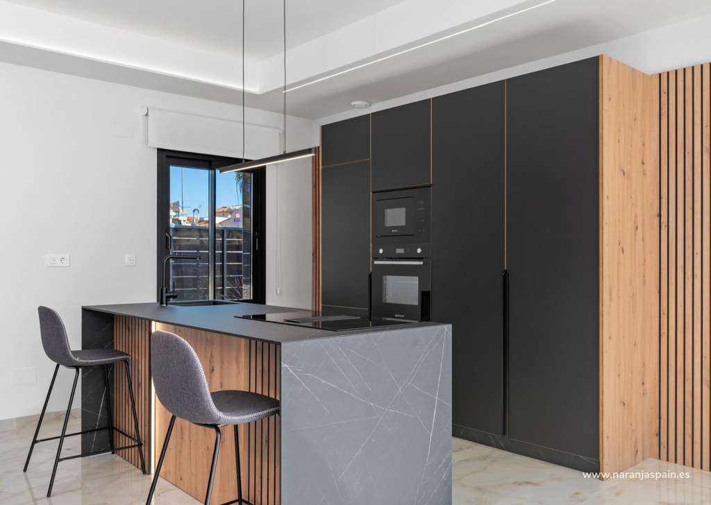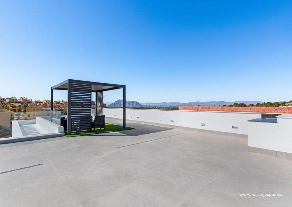 Especificaciones de alta calidad y acabados elegantesEstas villas están construidas con materiales y acabados de primera calidad para garantizar el confort, la eficiencia y el estilo moderno. Entre sus características se incluyen una puerta de entrada de seguridad reforzada, persianas motorizadas, cocinas totalmente amuebladas y equipadas con electrodomésticos, y baños completos con muebles, espejos y mamparas de ducha. El solárium de la azotea cuenta con una cocina de verano y una pérgola, lo que crea el escenario perfecto para cenar al aire libre y relajarse. También se incluye un paquete de iluminación LED interior y exterior, que realza tanto el diseño como el ambiente.