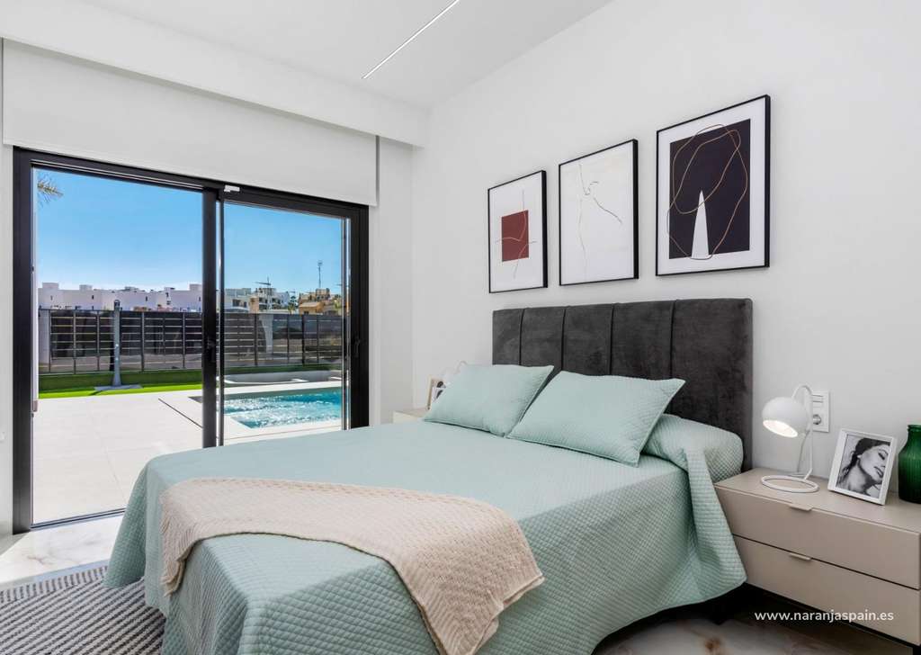 Modernas villas de una sola planta con piscina privada y soláriumCada villa está cuidadosamente diseñada en una sola planta, ofreciendo comodidad y funcionalidad en todas sus estancias. Las propiedades cuentan con 3 amplios dormitorios y 2 modernos cuartos de baño, una cocina americana de planta abierta y un luminoso salón-comedor con grandes ventanales que dan directamente a la terraza y al jardín privado. En el exterior, cada villa cuenta con una piscina privada, plaza de aparcamiento dentro de la parcela y un impresionante solárium privado de 150 m², ideal para disfrutar del sol durante todo el año.