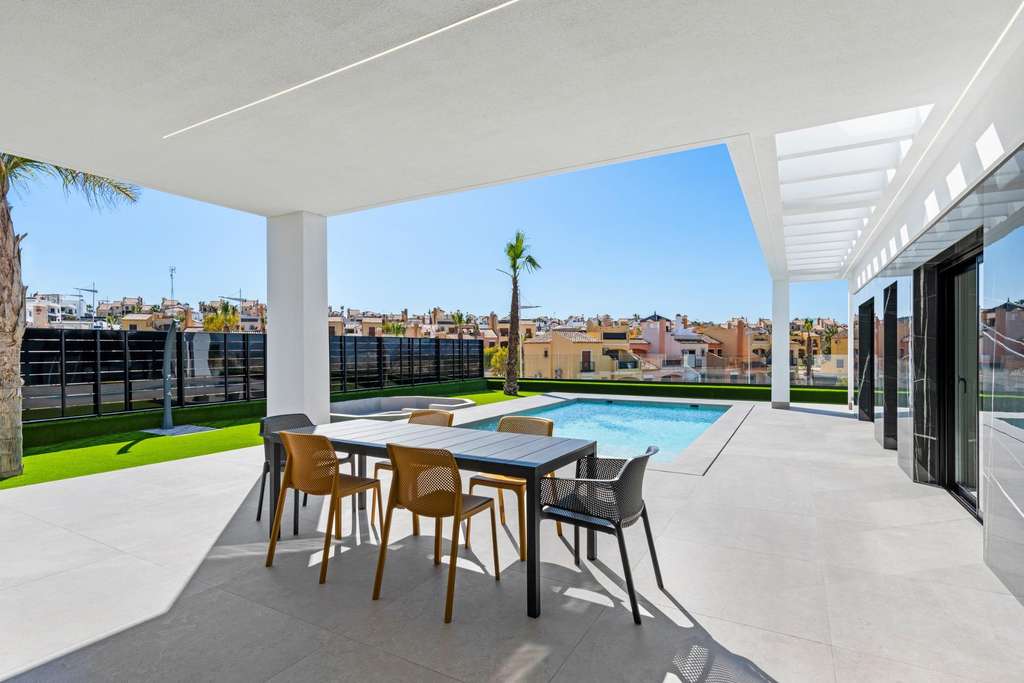 Estas villas están construidas con materiales y acabados de primera calidad para garantizar el confort, la eficiencia y el estilo moderno. Entre sus características se incluyen una puerta de entrada de seguridad reforzada, persianas motorizadas, cocinas totalmente amuebladas y equipadas con electrodomésticos, y baños completos con muebles, espejos y mamparas de ducha. El solárium de la azotea cuenta con una cocina de verano y una pérgola, lo que crea el escenario perfecto para cenar al aire libre y relajarse. También se incluye un paquete de iluminación LED interior y exterior, que realza tanto el diseño como el ambiente.