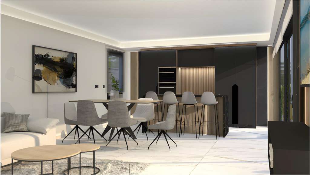 Estas villas están construidas con materiales y acabados de primera calidad para garantizar el confort, la eficiencia y el estilo moderno. Entre sus características se incluyen una puerta de entrada de seguridad reforzada, persianas motorizadas, cocinas totalmente amuebladas y equipadas con electrodomésticos, y baños completos con muebles, espejos y mamparas de ducha. El solárium de la azotea cuenta con una cocina de verano y una pérgola, lo que crea el escenario perfecto para cenar al aire libre y relajarse. También se incluye un paquete de iluminación LED interior y exterior, que realza tanto el diseño como el ambiente.