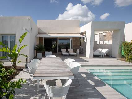 Esta villa independiente y exquisita ofrece una perfecta combinación de lujo moderno y elegancia atemporal. Consta de dos amplios dormitorios en suite, siendo el dormitorio principal el que cuenta con un vestidor espacioso, ofreciendo funcionalidad y confort. Dispone de un aseo de invitados y todas las estancias se encuentran en una sola planta principal para mayor comodidad. La cocina de diseño esta abierta y tiene acceso directo al jardín paisajístico, ideal para comer al aire libre y relajarse. La vivienda, en su diseño original, disponía de tres dormitorios. No obstante, el propietario ha realizado una reconfiguración estratégica de los espacios, transformándolos en dos amplios dormitorios principales y un funcional cuarto destinado a una oficina y organización de ropa, equipado con armarios integrados. Esta modificación aporta un notable equilibrio entre confort y practicidad, optimizando al máximo el uso de cada ambiente. La zona exterior es un oasis privado, con una piscina de 7 por 4 metros rodeada de terrazas elegantemente amuebladas que ofrecen una mezcla perfecta de áreas soleadas y sombreadas. El aparcamiento privado incluye un punto de carga para coche eléctrico, añadiendo comodidad y tecnología de última generación a la villa. Ubicada en un exclusivo vecindario a poca distancia del prestigioso La Finca Golf Club y del Hotel & Spa La Finca, esta villa está a tan solo 15 minutos en coche de las playas de bandera azul de Guardamar del Segura y a 45 minutos del Aeropuerto Internacional de Alicante, ofreciendo una ubicación privilegiada para disfrutar de un estilo de vida mediterráneo de lujo. Los propietarios están abiertos a recibir ofertas razonables. No dude en contactarnos para más información o para programar una visita.