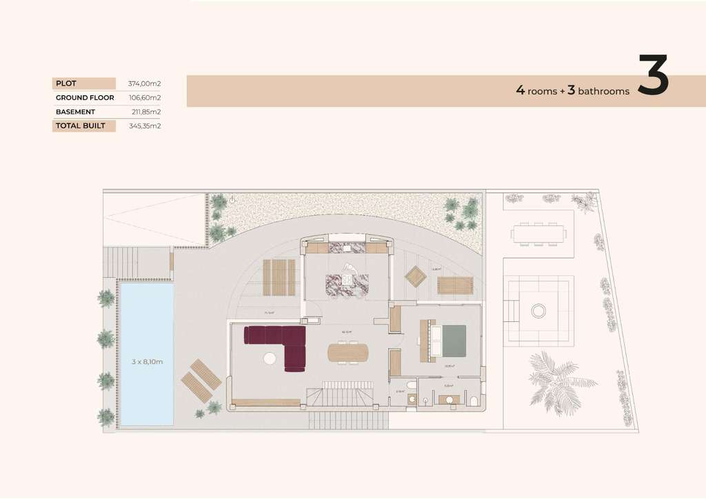 Villas de nueva construcción en La Finca Golf, Algorfa: lujo moderno en el corazón de la Costa Blanca Exclusiva promoción de 6 villas independientes Esta exclusiva colección de seis villas de nueva construcción en La Finca Golf, Algorfa, ofrece una oportunidad excepcional para disfrutar del lujo, el confort y la vida mediterránea en uno de los complejos de golf más prestigiosos de la Costa Blanca Sur. Diseñadas pensando en la elegancia y la funcionalidad, estas viviendas contemporáneas cuentan con interiores espaciosos, jardines privados y acabados de primera calidad. Diseño elegante y distribución espaciosa Cada villa se distribuye entre la planta baja y el sótano, ofreciendo más de 300 m² de superficie habitable. La distribución incluye 4 dormitorios, todos con baño en suite, un aseo adicional para invitados y una luminosa cocina y salón diáfanos con acceso directo a la terraza y la zona de la piscina. El sótano cuenta con garaje, lavadero y trastero, lo que garantiza la practicidad y la comodidad. Los grandes ventanales inundan el interior de luz natural y crean una conexión perfecta entre los espacios interiores y exteriores, ideal para disfrutar del suave clima mediterráneo durante todo el año. Características premium y eficiencia energética Todas las villas están construidas con los más altos estándares, incorporando materiales de primera calidad y sistemas avanzados de eficiencia energética: Cocina totalmente amueblada y equipada con electrodomésticos. Baños con calefacción por suelo radiante, muebles empotrados con espejos y mamparas de ducha. Sistema de agua caliente aerotérmico. Aire acondicionado por conductos con control Airzone. Paneles solares fotovoltaicos de 4 kW para ahorrar energía. Persianas motorizadas en los dormitorios. Iluminación LED en todo el interior y el exterior. Piscina privada y jardín paisajístico. Estas características garantizan el máximo confort, la sostenibilidad y un bajo impacto medioambiental. Ubicación privilegiada en La Finca Golf Resort Situadas en La Finca Golf Resort, en Algorfa, estas villas disfrutan de un entorno tranquilo y exclusivo, rodeadas de naturaleza y campos de golf. Los residentes se benefician de la proximidad de restaurantes, un hotel de 5 estrellas con instalaciones de spa y una gran variedad de opciones de ocio. Distancias a los principales puntos de interés: Campo de golf La Finca: 1200 m Playa de Guardamar del Segura: 13 km (15 minutos) Aeropuerto Internacional de Alicante: 35 minutos Almoradí, Benijófar, Ciudad Quesada: 5-10 km Torrevieja y Orihuela Costa: 15 minutos Viva el estilo de vida mediterráneo del golf Combinando una arquitectura moderna, acabados de alta calidad y una ubicación inmejorable, estas villas de nueva construcción en La Finca Golf, Algorfa, representan el hogar perfecto para los amantes del golf y para aquellos que buscan tranquilidad cerca de la costa. Póngase en contacto con nosotros hoy mismo para concertar una visita y descubrir su nueva vida en la Costa Blanca. 425