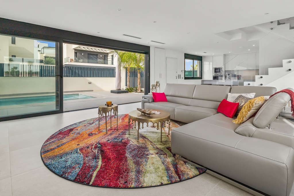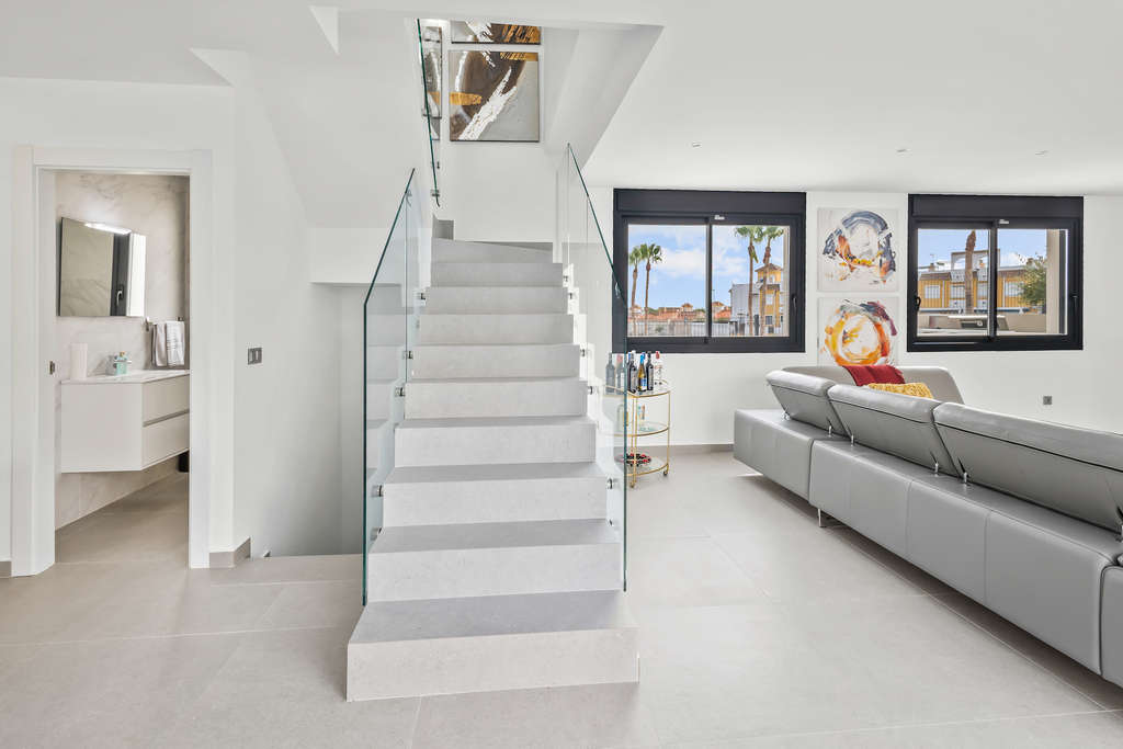 Nos complace presentarles esta fabulosa villa independiente en Algorfa. Ubicada en una zona privilegiada, a un paseo de una zona comercial, esta propiedad ofrece todo lo necesario para un estilo de vida excepcional en España. Se accede a la propiedad a través de una puerta automatizada para aparcar el coche en la parcela. Justo enfrente de la casa hay una gran piscina para disfrutar del clima cálido durante todo el año. Al entrar por la puerta principal, el amplio salón está inundado de abundante luz natural. A la izquierda se encuentra la cocina abierta, totalmente equipada y con acabados de alta calidad, perfecta para recibir a sus invitados. En la misma zona se encuentra el lavadero con la lavadora, la caldera y la secadora. En la misma planta, también hay un aseo. Al subir a la primera planta se accede al dormitorio principal y al dormitorio de invitados, ambos amplios y con baños en suite. La misma planta cuenta con un amplio balcón con vistas a la piscina.El sótano se ha transformado en una segunda sala de estar, con un dormitorio y una habitación que sirve como despacho. Además, hay un aseo con ducha y trasteros. La villa está completamente amueblada con una decoración moderna y cuenta con aire acondicionado central para mayor comodidad durante todo el año.Salga a disfrutar de su piscina privada, perfecta para relajarse, recibir amigos bajo el sol o simplemente disfrutar de una buena comida junto a la zona de barbacoa.¡Esta propiedad es IMPERDIBLE! ¡Se recomienda visitarla con anticipación!Algorfa es conocida por su entorno tranquilo, sus hermosos paisajes y su acogedora comunidad. Es un destino popular para quienes buscan un estilo de vida tranquilo con fácil acceso a campos de golf, tiendas y restaurantes.