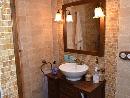Espectacular casa de estilo rústico, totalmente equipada y lista para entrar a vivir. La casa consta de 3 dormitorios y dos baños con acabados de alta calidad. Incluye electrodomésticos de última generación. La cocina destaca por su encimera y fregadero de piedra maciza, resistentes y con un estilo único. Dispone de un patio trasero con barbacoa integrada y un solárium con preinstalación para jacuzzi. Además, la casa cuenta con aire acondicionado centralizado, chimenea y paneles solares para reducir el consumo eléctrico. Tiene un garaje privado con espacio para instalar más. En él hay una pequeña habitación construida y la posibilidad de instalar un baño, así como también existe la posibilidad de ampliar la vivienda. La ubicación es excelente, ya que se encuentra en una calle muy tranquila, sin grandes edificios alrededor, pero a la vez a poca distancia del centro de la ciudad.