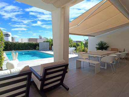 Aquí tiene una oportunidad maravillosa de adquirir una VILLA MODERNA estilo Andros, recién salida al mercado. Esta villa ha sido reformada y cuenta con dos dormitorios y dos baños y medio. Existe la opción de rehabilitar el tercer dormitorio, ya que los actuales propietarios lo han convertido en vestidor y despacho. La villa se encuentra en el conocido complejo de golf y spa La Finca, cerca de Algorfa, en la Costa Blanca Sur. Esta fabulosa villa se encuentra a menos de 20 minutos a pie de restaurantes, bares y tiendas y ofrece las siguientes ventajas:Superficie construida: 132 m²Parcela: 500 m²Se vende sin amueblarSistema de videovigilancia y alarmaPersianas eléctricasAire acondicionado por conductos en toda la casaSuelo radiante en bañosToldos para dar sombra a la villaSelección de electrodomésticos incluidosElectrodomésticos MielePiscina privadaJardines bien cuidadosAparcamiento privado con cargador para coche eléctricoSistema de domótica mediante aplicación y panel de controlDetalles de diseño en toda la casa, incluyendo iluminación Tom DixonAquí tiene una vista general de la villa: al entrar, se encuentra una amplia sala de estar de planta abierta, con la cocina a la izquierda y el comedor a la derecha. Las puertas correderas de cristal aportan mucha luz natural y dan acceso a la terraza, ideal para relajarse con un buen libro o broncearse. Sin embargo, no se preocupe si hace demasiado calor, ya que puede optar por un toldo eléctrico para disfrutar de la sombra o darse un chapuzón en su piscina privada. El jardín, cuidadosamente diseñado, rodea la propiedad y ofrece color y diversos tipos de fruta durante todo el año.Volviendo al interior, hacia la entrada principal, hay un pasillo que da acceso a un baño familiar de buen tamaño. Frente a este se encuentra el dormitorio de invitados, seguido de lo que habría sido el segundo dormitorio de invitados, pero ahora convertido en vestidor. Esta zona podría reconvertirse, si lo desea, en un tercer dormitorio si es necesario. Por último, en esta planta, frente a los dormitorios de invitados, se encuentra el dormitorio principal, el más grande de todos, con vestidor, baño privado con ducha y puertas de cristal que dan a la terraza y los jardines. Esta propiedad se vende sin amueblar, pero tiene la opción de comprar parte o la totalidad de los muebles, lo cual puede negociar con el propietario.Esta es una hermosa villa, que le ofrece algo diferente con un toque de clase, así que ¿por qué no viene y lo ve usted mismo? ¡Gracias por visitarnos!
