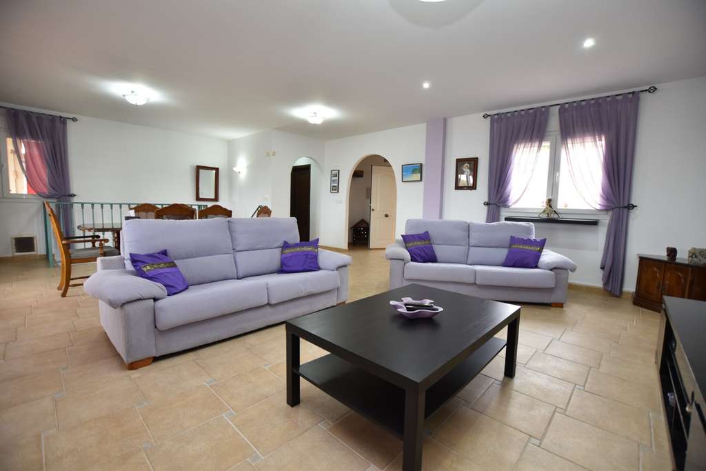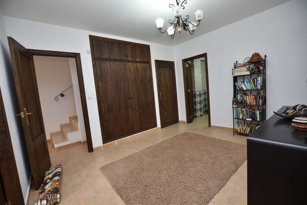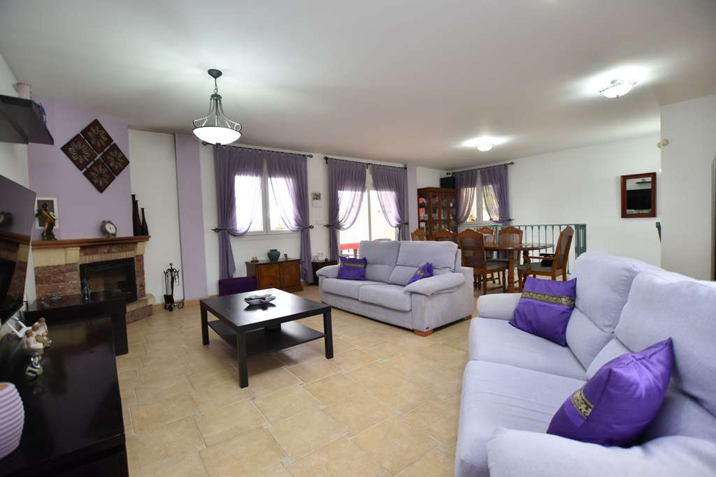 La planta principal dispone de un amplio salón-comedor con chimenea, gran cocina independiente con galería y un aseo de cortesía. Tanto el salón como la cocina tienen acceso directo a una terraza envolvente con impresionantes vistas abiertas a la Vega Baja, ideal para desayunos al sol o cenas al atardecer.