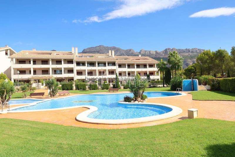 Altea la Vella, Residencial Altea Natura 2, apartamento en planta primera con ascensor con una superficie de 107 m2 y unas vistas preciosas a la piscina zona verde y a las montañas, la vivienda dispone de 2 dormitorios el dormitorio principal en suite y dispone de acceso directo a la terraza y 2 baños, amplio salón comedor, cocina independiente con galeria, 2 terrazas de 23 m2, la vivienda se vende amueblada y con aire acondicionado, el residencial dispone de amplias zonas verdes una preciosa piscina comunitaria de verano y una piscina climatizada de invierno, asi como su plaza de parking.~