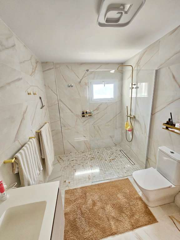 Cuenta con 2 amplios dormitorios, 2 baños completos con suelo radiante, cocina abierta totalmente equipada, aire acondicionado y una luminosa zona de estar exterior con impresionantes vistas panorámicas al Mediterráneo.