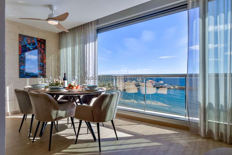 En la planta principal, un amplio y luminoso salón-comedor se abre al exterior a través de grandes ventanales panorámicos, permitiendo disfrutar del mar desde prácticamente cualquier punto. La cocina de diseño, totalmente equipada, se integra de forma natural en el espacio. Esta planta dispone además de tres dormitorios y dos baños, uno de ellos en suite, todos diseñados con un cuidado excepcional por el detalle.