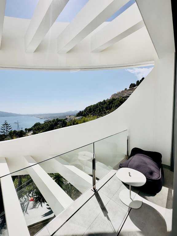 La vivienda cuenta con amplios espacios interiores, aprovechando al máximo la luz natural y las impresionantes vistas. Su terraza y balcón son ideales para disfrutar del clima mediterráneo durante todo el año.