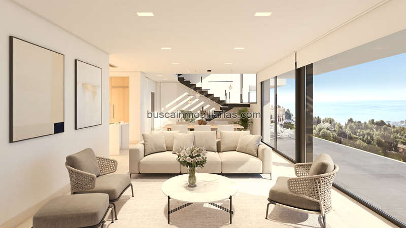 Construida en tres niveles, el acceso se realiza por la planta superior, donde se encuentra el parking y el hall, conectado al resto de la vivienda mediante ascensor. En las plantas inferiores, los espacios se abren hacia la gran terraza y la piscina, permitiendo que el mar, el aire y la vegetación se integren en cada rincón del hogar. La zona de día se desarrolla en un ambiente fluido y luminoso, mientras que los dormitorios están diseñados para el descanso y la privacidad, con acceso directo al exterior.