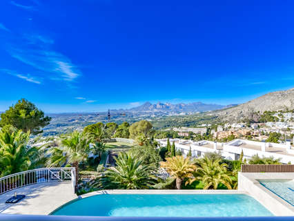 Situada en la prestigiosa Sierra de Altea, esta villa de lujo redefine el concepto de exclusividad y confort. Ofreciendo una combinación perfecta de encanto mediterráneo y sofisticado estilo contemporáneo, la villa cuenta con vistas panorámicas al mar Mediterráneo, la Sierra de Helada y el impresionante interior montañoso con montañas icónicas como el Puig de Campana y la Sierra de Bernia. La villa está situada en una parcela de 2440 m2 y tiene una superficie total construida de 920 m2 repartidos en tres plantas.Atravesando el elegante hall de entrada, una maciza puerta de madera le da la bienvenida a un espacio abierto y luminoso. El impresionante salón con chimenea, el comedor y la cocina de diseño con isla crean un entorno ideal para el entretenimiento y la convivencia. Desde todos los rincones, los grandes ventanales enmarcan las excepcionales vistas al mar de la bahía de Altea y la majestuosa Sierra Helada, transformando el paisaje en una obra de arte natural. Los techos altos con vigas de madera, los materiales de alta calidad y la armonía en cada detalle reflejan el lujo en su máxima expresión. En esta planta se encuentra el dormitorio principal con vistas al mar, armarios empotrados y baño en suite con ducha, bañera y doble lavabo. Además, hay otros dos dormitorios dobles, cada uno con baño en suite. Esta planta da acceso a una amplia terraza cubierta con salón y barbacoa desde donde se puede disfrutar de las hermosas vistas. La planta baja cuenta con una segunda sala de estar, comedor y cocina abierta, perfecta para invitados. También en esta planta hay un dormitorio principal con vistas al mar, armarios empotrados y baño en suite con ducha, bañera y lavabo doble. También hay un segundo dormitorio doble con baño en suite y dos dormitorios dobles con baño compartido. Para mayor comodidad, también hay un aseo, un lavadero y un trastero en la planta baja. Fuera de la planta baja es también una amplia terraza con una hermosa piscina y jacuzzi. También hay una terraza cubierta. En el sótano hay un gimnasio, un trastero y un garaje cerrado para tres coches.Gracias a su óptima distribución, esta villa es ideal para familias numerosas o para quienes gustan de recibir invitados, con habitaciones diseñadas para la privacidad y el confort.En el exterior, un jardín perfectamente cuidado rodea la propiedad, con una gran variedad de flores y árboles maduros que aportan frescura y exclusividad. Justo enfrente de un sereno estanque con peces exóticos se encuentra la joya adicional de esta propiedad: una casa de huéspedes con esencia marroquí. Un oasis independiente con un diseño evocador, jardín privado y vistas inigualables al mar. Está totalmente equipada y ofrece aire acondicionado, TV por cable, Internet de fibra óptica y un sistema de seguridad conectado. A sólo 6 minutos de las playas y del campo de golf, y cerca del centro de Altea, ofrece la combinación perfecta de tranquilidad y acceso a las mejores playas de la zona.Viva en un lugar donde la privacidad, el confort y la belleza natural se combinan en perfecta armonía. ¡Solicite ya su visita!