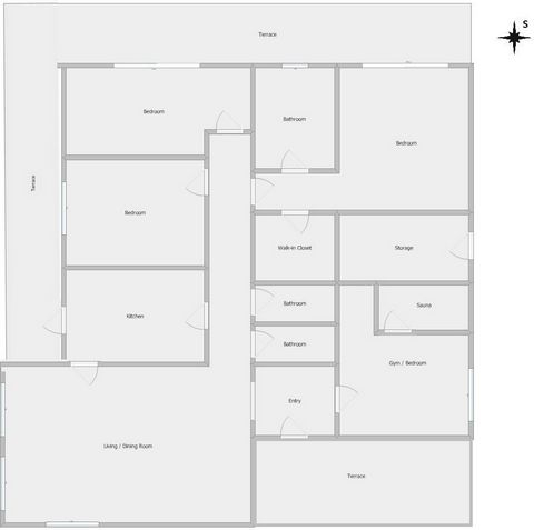La casa tiene 3 dormitorios, 3 baños, sauna con ducha y sala de descanso (posiblemente otro dormitorio o gimnasio), piscina y un terreno de 837 m².