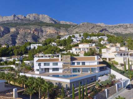 VILLA DE LUJO CON FANTASTICAS VISTAS AL MAR Y MONTAÑAS EN VENTA EN ALTEAEsta es una de las casas de estilo mediterráneo más bonitas en venta en toda la costa norte de la Costa Blanca, ubicada en un enclave único en la Sierra de Altea. Ofrece fantásticas vistas al mar, a la montaña, a las zonas verdes y a la playa de Altea. La superficie total de la casa es de 1.677 m². Encontrará 7 dormitorios, 9 baños, 3 salones-comedor de estilo mediterráneo, 2 piscinas y jacuzzi. Dispone de garaje para 9 coches, despacho, gimnasio, spa y bodega privada. Un trastero, una despensa y una zona de lavandería. El salón tiene acceso a una hermosa terraza con vistas panorámicas al mar, para que pueda disfrutar constantemente de vistas espectaculares. 2 terrazas, una de ellas con zona de barbacoa y otra con vistas panorámicas al mar. Dispone de un jardín muy bien cuidado y de diseño elegante con iluminación y riego automático. Aire acondicionado y calefacción central. La casa también cuenta con dos chimeneas: una en el salón y otra en el dormitorio principal. La villa cautiva con su cuidado diseño, donde la abundante luz crea una sensación de amplitud y libertad en cada rincón. Materiales nobles cuidadosamente seleccionados confieren a los interiores una atmósfera de lujo y elegancia.Es un gran lugar para vivir. Aquí los bosques de pino pintorescos en combinación con el aire del mar crean un microclima muy saludable.Situada en el norte de la Costa Blanca, ALTEA es conocida por su paisaje característico y el impresionante paisaje. A los pocos minutos en coche de la ciudad encuentra restaurantes, bancos, escuelas, salones de spa, estacionamiento para yates. También la ciudad de Benidorm, que está rodeado de pequeños pueblos con un ambiente relajado y el medio ambiente respetable, a la vez que ofrece todo tipo de entretenimiento.