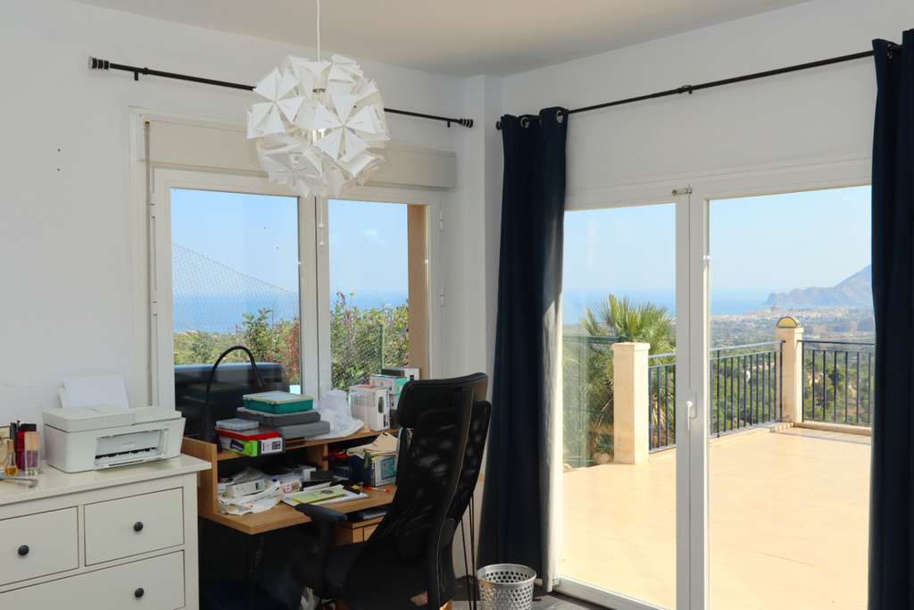 Esta encantadora propiedad combina el estilo mediterráneo con un entorno privilegiado. En la planta baja encontramos una luminosa cocina, un acogedor salón-comedor, baño de cortesía, un dormitorio con vestidor y baño en suite, además de un trastero. La planta alta dispone de dos dormitorios que comparten un baño completo, con acceso independiente desde el exterior, lo que otorga flexibilidad y comodidad.La villa cuenta con múltiples detalles:Vistas panorámicas al marGaraje para 2 cochesPiscina, naya y zona de barbacoaDoble acristalamiento y persianas en dormitoriosCalefacción y agua caliente a gasSe vende totalmente amuebladaUbicada en una amplia parcela de 1.669 m², la vivienda ofrece privacidad, espacio y la posibilidad de ampliación para transformarla en por ejemplo una villa ibicenca del doble del tamaño actual. El tamaño de la villa actual ya es 255m², y al lado de la casa con su terraza enorme hay una zona de naturaleza que se puede usar para construir más.Una propiedad única, con carácter y un enorme potencial en una de las zonas más exclusivas de la Costa Blanca.