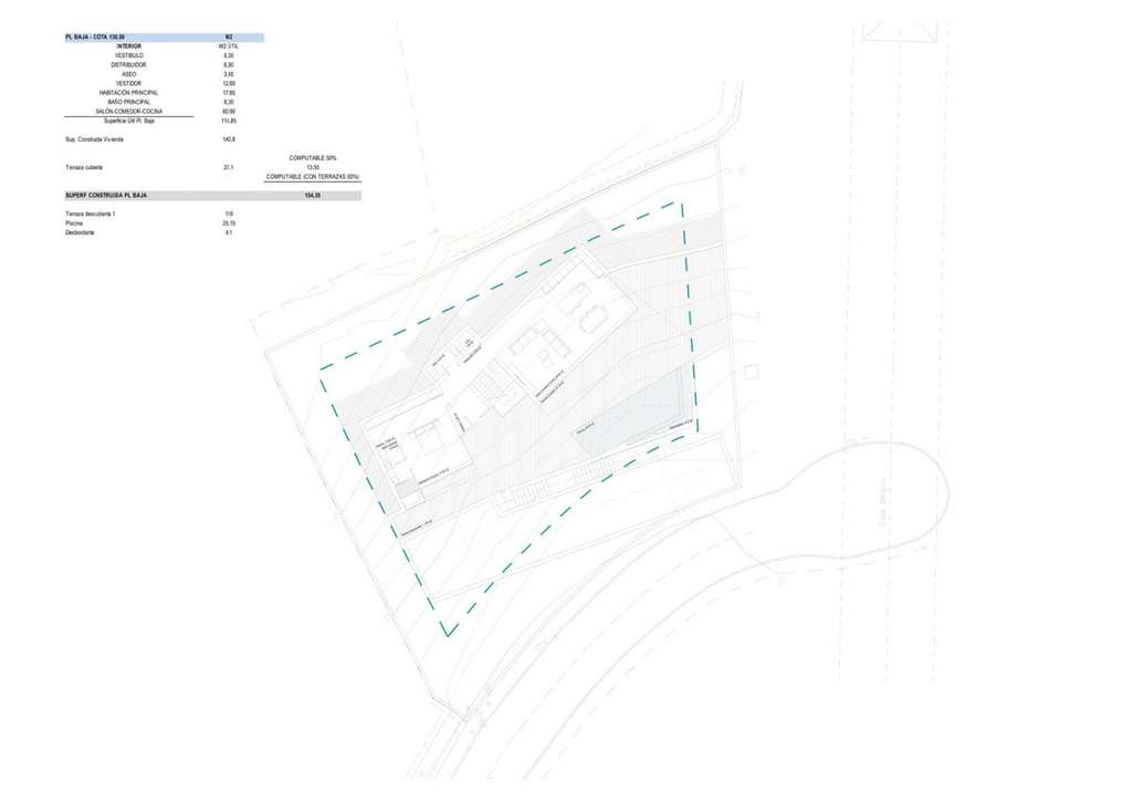 Villa construida en la parcela de 836,26 m2 con 100% de privacidad, ajardinada con barbacoa.