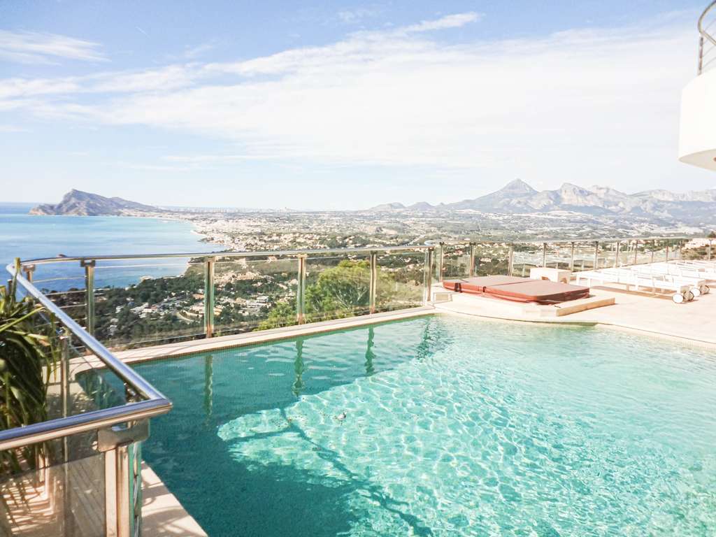 Presentamos esta espectacular villa independiente de alto standing, con 7 dormitorios y 8 baños, situada en la exclusiva urbanización Altea Hills, reconocida por su seguridad 24 horas y sus impresionantes vistas al mar Mediterráneo y a las montañas.