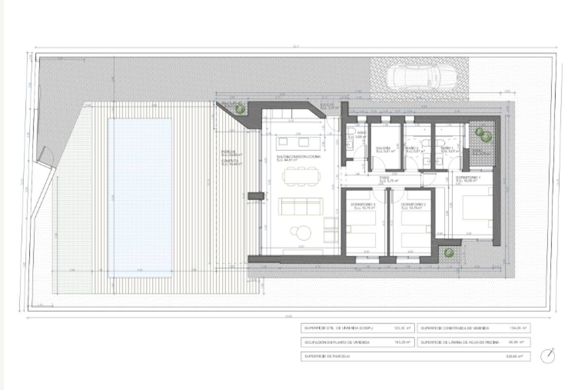 Descubre estas elegantes villas de diseño moderno, con una distribución pensada para aprovechar al máximo la luz natural y la amplitud de los espacios. Cada vivienda ofrece 3 dormitorios, 2 baños y un salón-comedor abierto con grandes ventanales franceses, que conectan con la terraza, el jardín privado y la piscina.