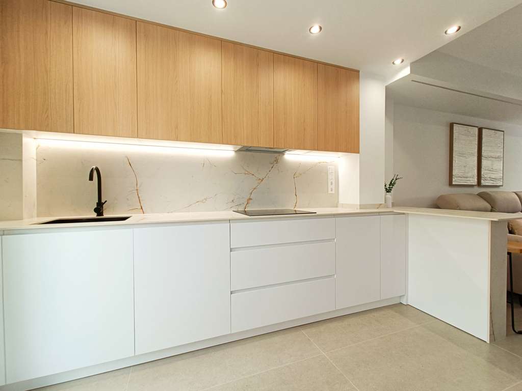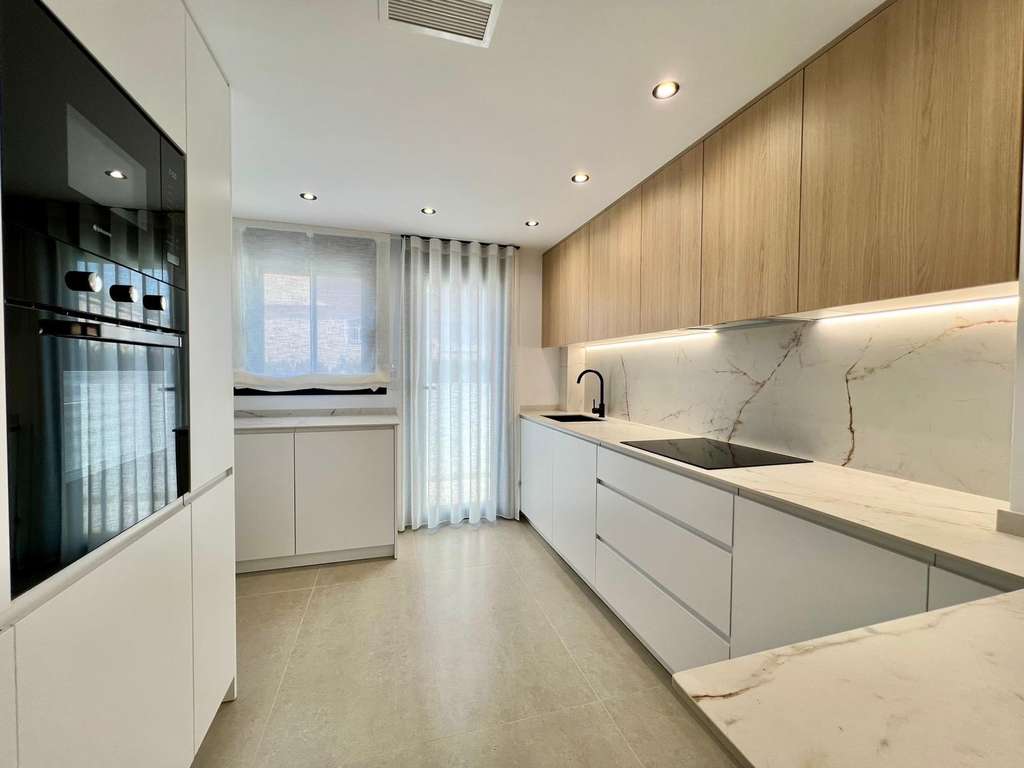 La cocina se entrega completamente equipada, con muebles y electrodomésticos incluidos.