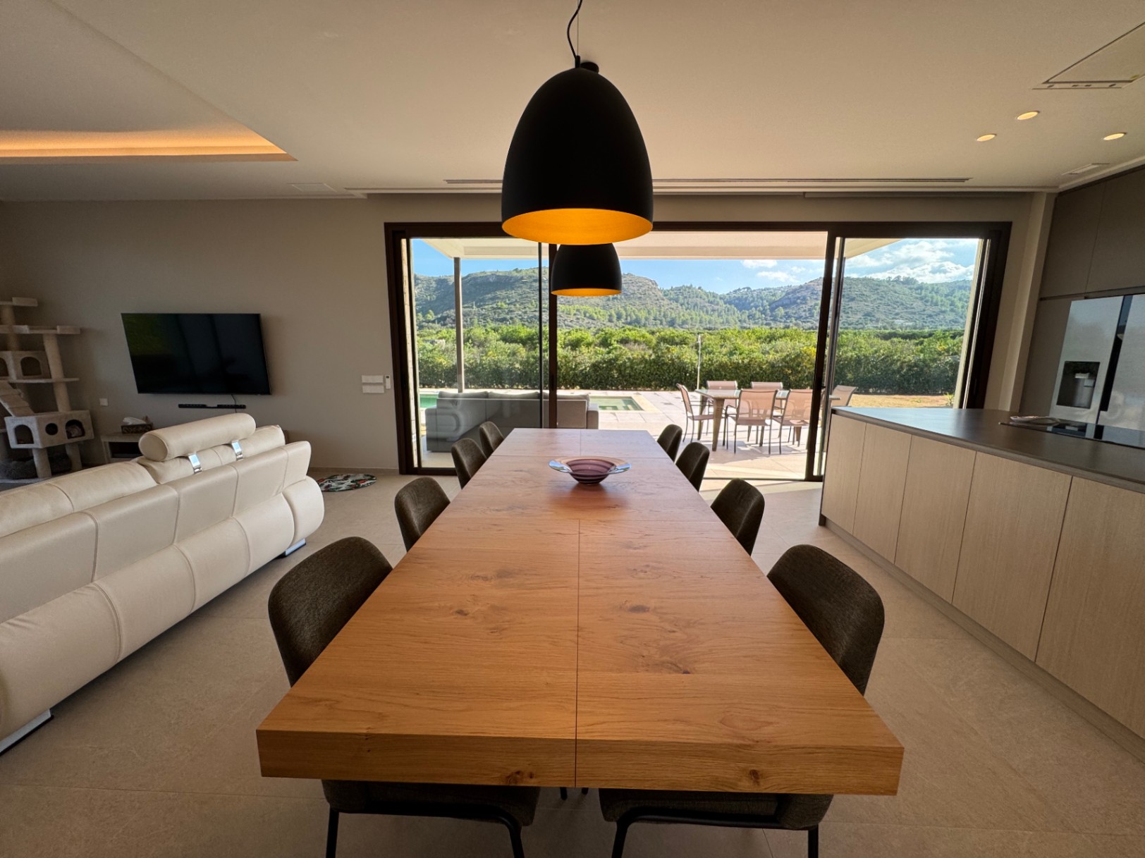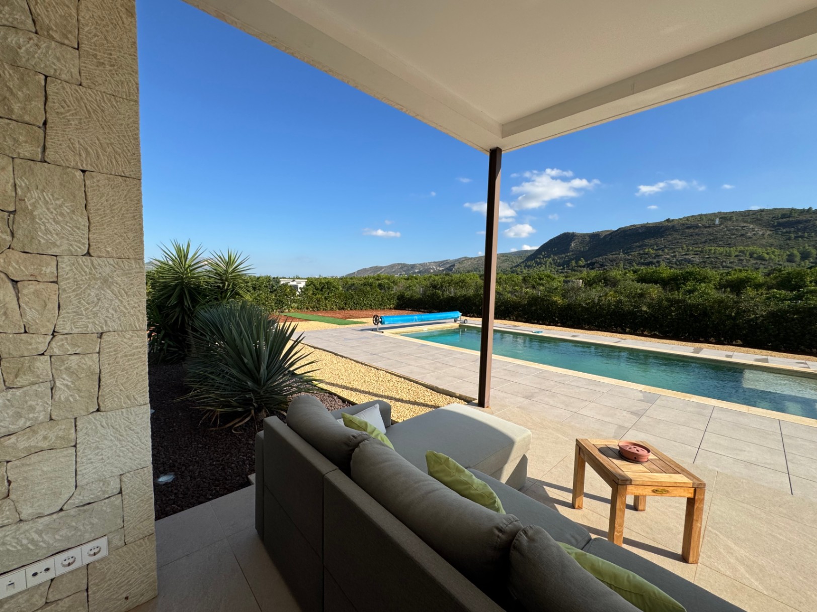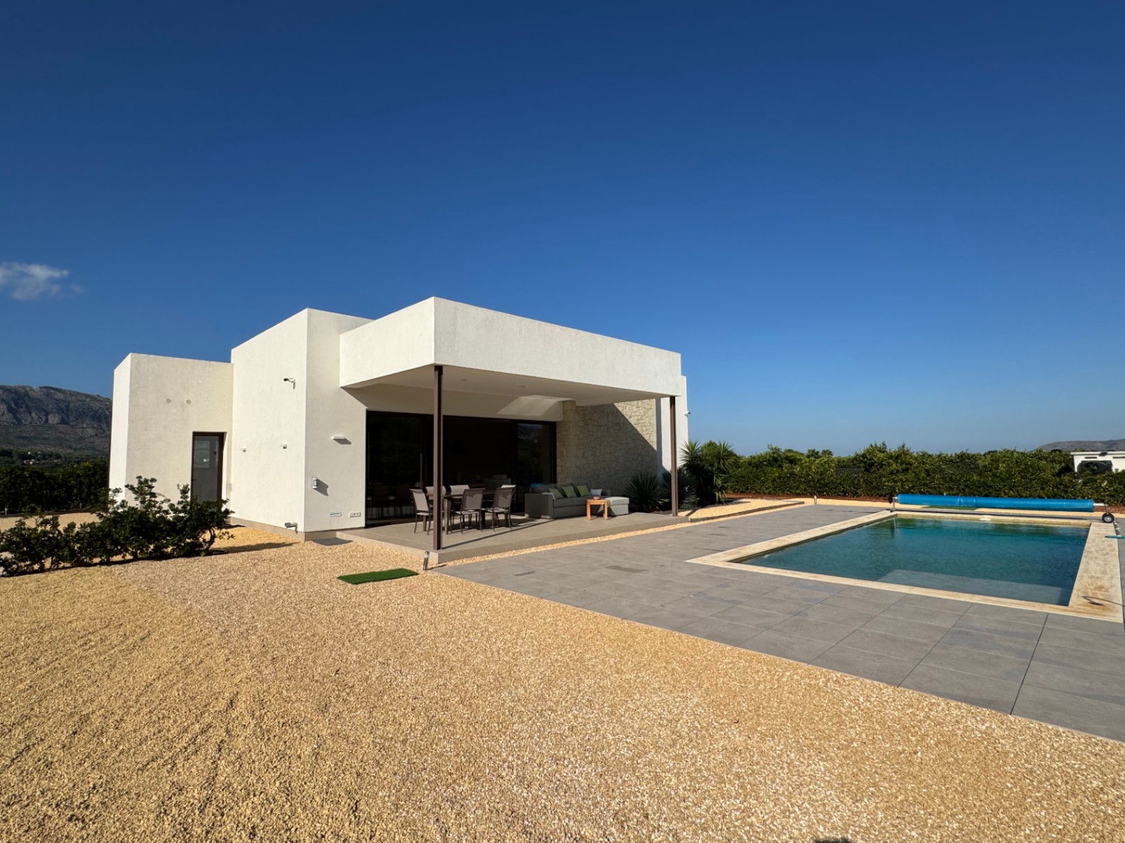 La villa está diseñada para vivir cómodamente en una sola planta, sin escalones, con un diseño moderno y acabados de alta calidad. Su orientación sur garantiza luminosidad durante todo el día y unas impresionantes vistas panorámicas a las montañas cercanas.