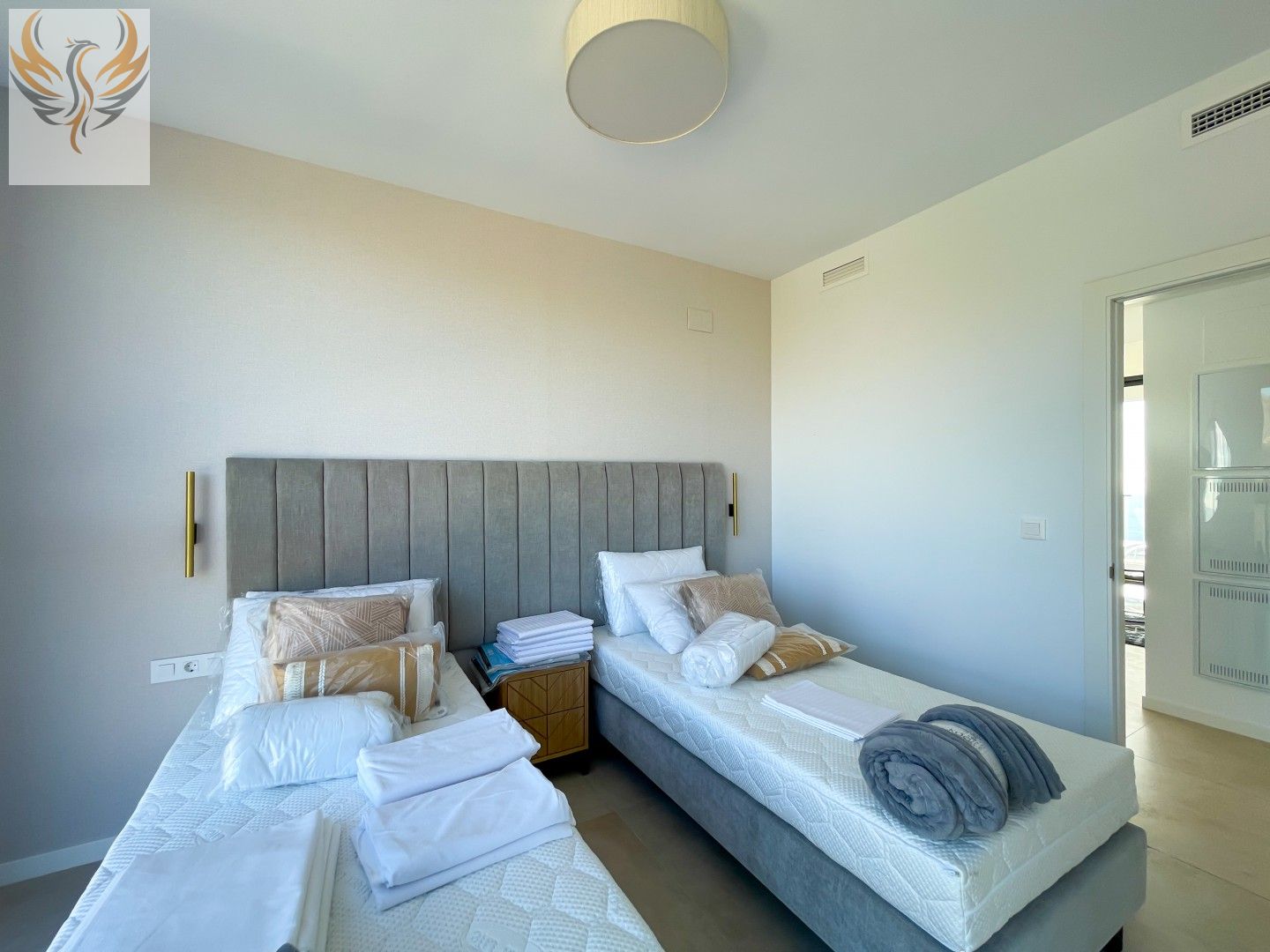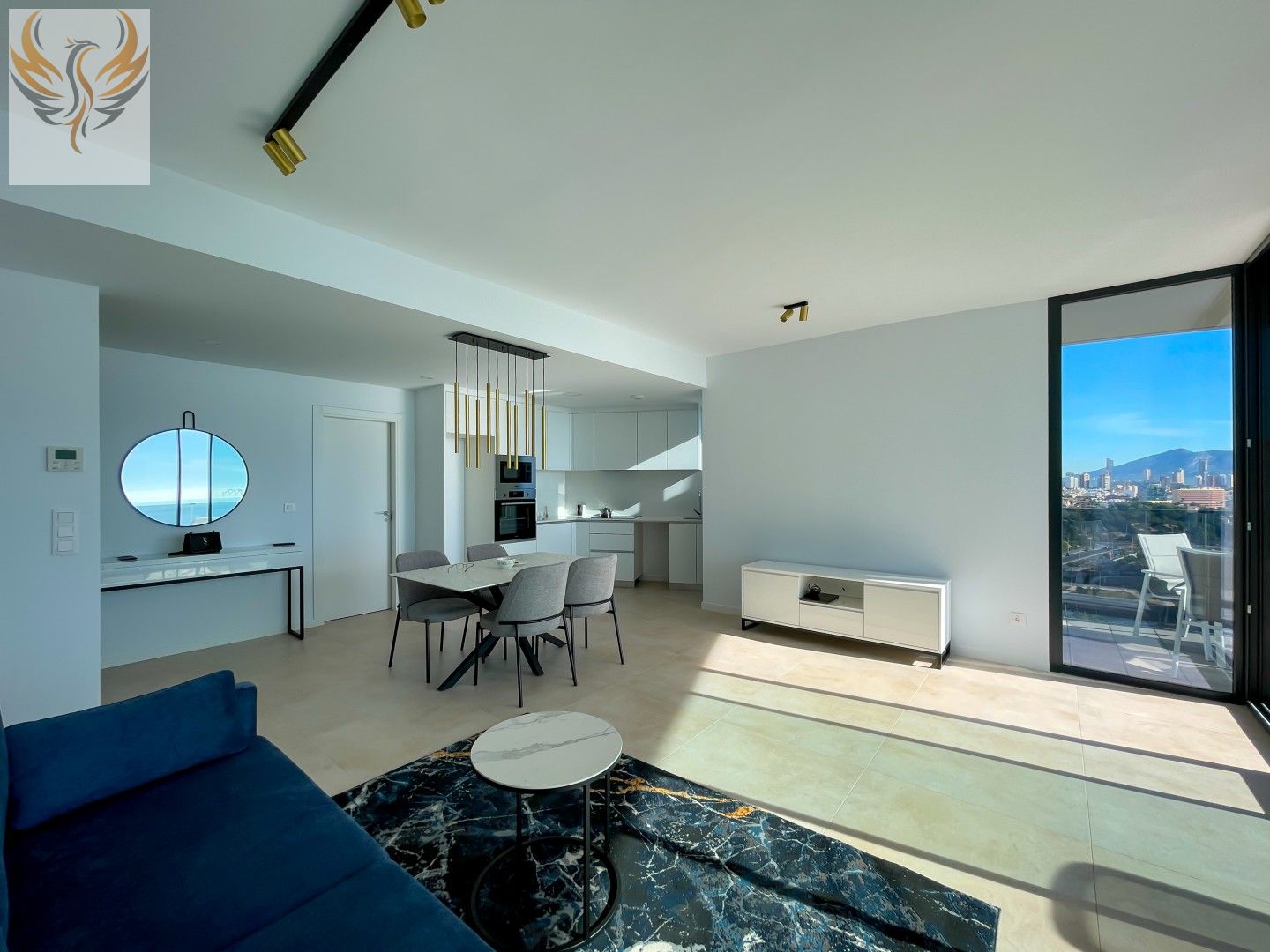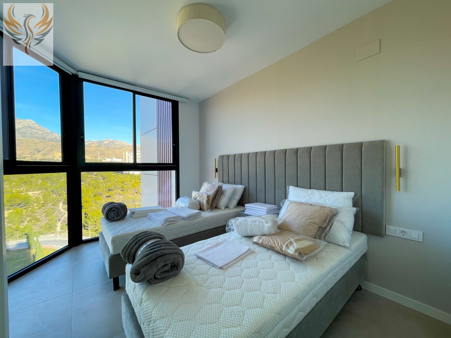 Se alquila este magnífico apartamento en Benidorm para larga temporada , ubicado en la zona Poniente, cerca de la playa. Con una superficie de 110m2 y una amplia terraza de 16m2 con vistas despejadas al mar, esta propiedad cuenta con todas las comodidades para entrar a vivir. Dispone de dos habitaciones dobles, dos baños completos, carpintería interior de madera y suelos de gres. Además, está equipada con aire acondicionado centralizado y armarios empotrados en ambas habitaciones.