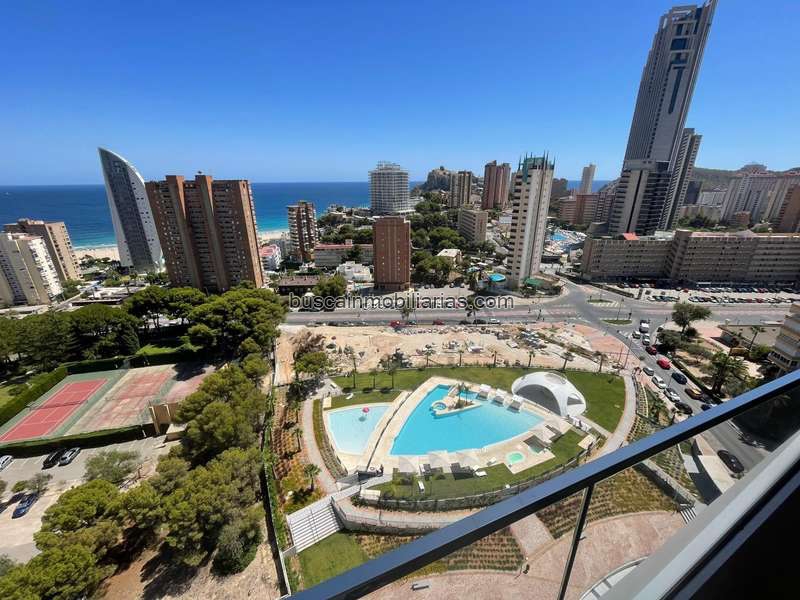 Desde el mes de SEPTIEMBRE estará disponible precioso apartamento dentro del residencial Benidorm Beach, Playa Poniente. Se alquila para larga temporada. De momento están amueblando el piso así que el día de la entrada se entregará totalmente amueblado. Dos habitaciones y 2 baños. Planta 13. Viene en complejo con una plaza de aparcamiento y trastero. Dentro del residencial hay dos piscinas comunitarias, zonas ajardinadas, seguridad 24h, cafe-bar y zonas chill-out, gimnasio y piscina cubierta en la planta 26 con vistas preciosas