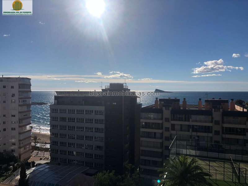 Este estupendo apartamento de 2 habitaciones muy cerca del centro a pie y al lado de la fabulosa playa poniente. Ademas la vivienda goza de mucha luz , preciosas vistas al mar y a la isla de Benidorm. Sus dos dormitorios son dobles de buen tamaño con sus armarios empotrados teniendo ademas el principal acceso a una terraza cerrada adaptada como vestidor. Cuarto de baño completo con plato de ducha grande , cocina independiente , y salon con vistas al mar. La urbanización cuenta con piscina comunitaria y se incluye plaza de garaje. Toda una oportunidad al estar a un paso del centro de Benidorm y de la mejor playa. Se exige solvencia económica demostrable, no se admiten mascotas .