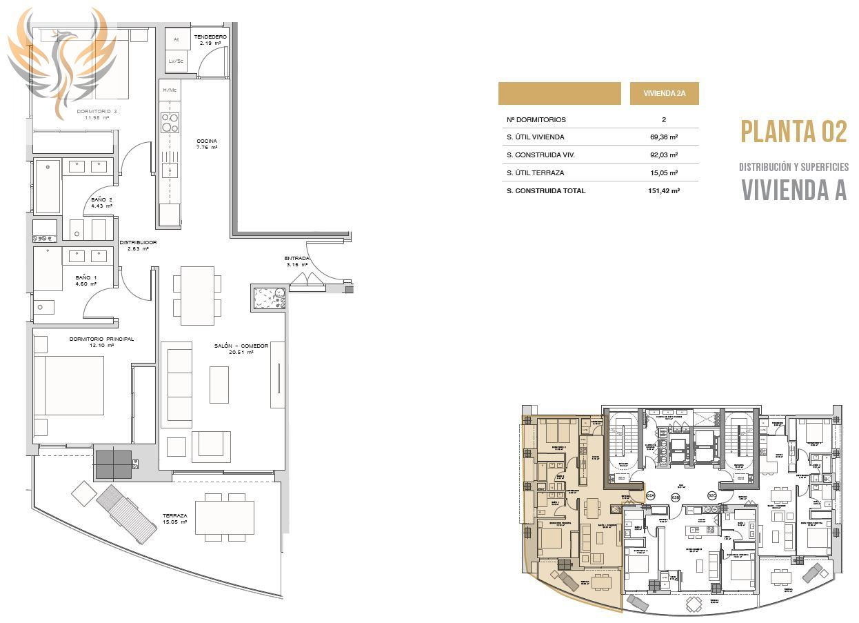 Apartamento 2a Planta, A(2D). Un total de 2 Dormitorios. Superficie Util: 69,36m2. Superficie Construida: 92,03m2 Util Terraza: 15,05m2. Sup. Construida Total: 151,42m2. Precio: 955.000 €