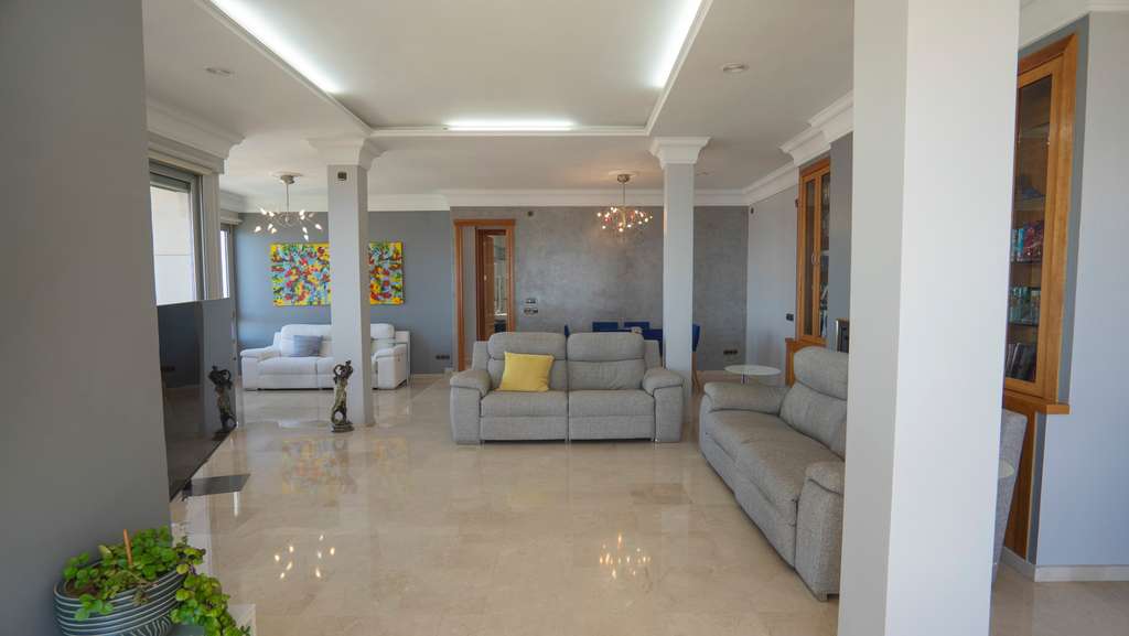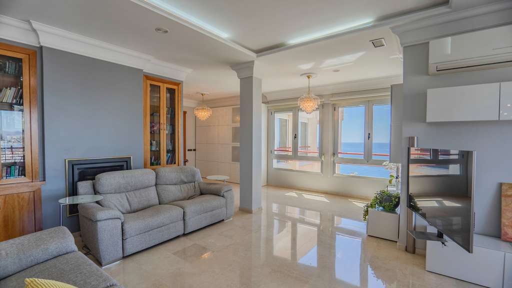 Pase a la sala de estar y quedará inmediatamente deslumbrado por las vistas del resplandeciente Mediterráneo, enmarcadas por puertas que dan al patio y grandes ventanales. Cuando puedas alejarte de las vistas, verás lo impresionante que es el salón con 70 m2 de espacio, suelos de mármol pulido y una decoración de buen gusto. Un balcón junto a la sala de estar permite cenar al aire libre o simplemente relajarse y contemplar las escenas de la ciudad y el mar a sus pies. Si te encanta recibir invitados, imagina las increíbles fiestas que podrías hacer en esta sala . #13; #13;