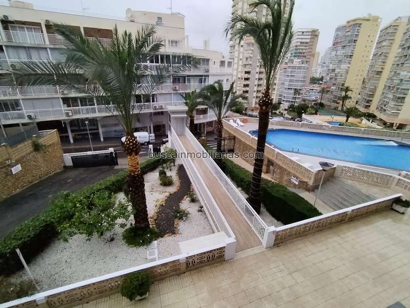 Apartamento en Benidorm zona Rincón de Loix, 107 m. de superficie, 60 m2 de terraza, 100 m. de la playa, 3 habitaciones dobles, un baño, un aseo, propiedad reformada, cocina sólo muebles, carpintería interior de madera, orientación suroeste, suelo de mármol, carpintería exterior de aluminio / climalit. Persianas eléctricas.