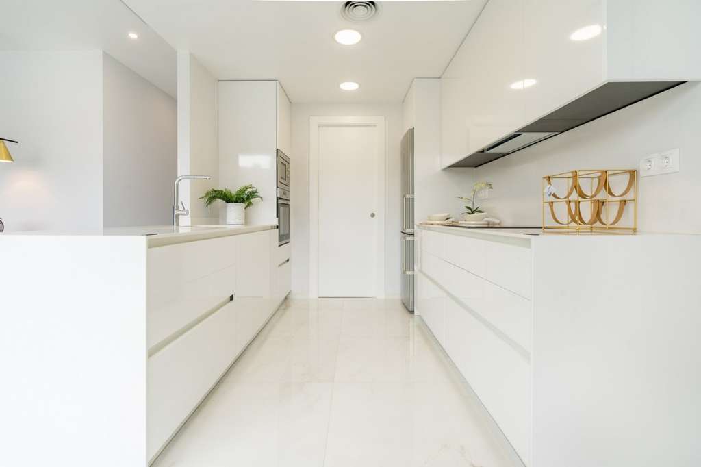 Electrodomésticos: Campana, Horno y placa de inducción touch-control, Frigorífico, Lavavajillas, Lavadora, Preinstalación de secadora y microondas.